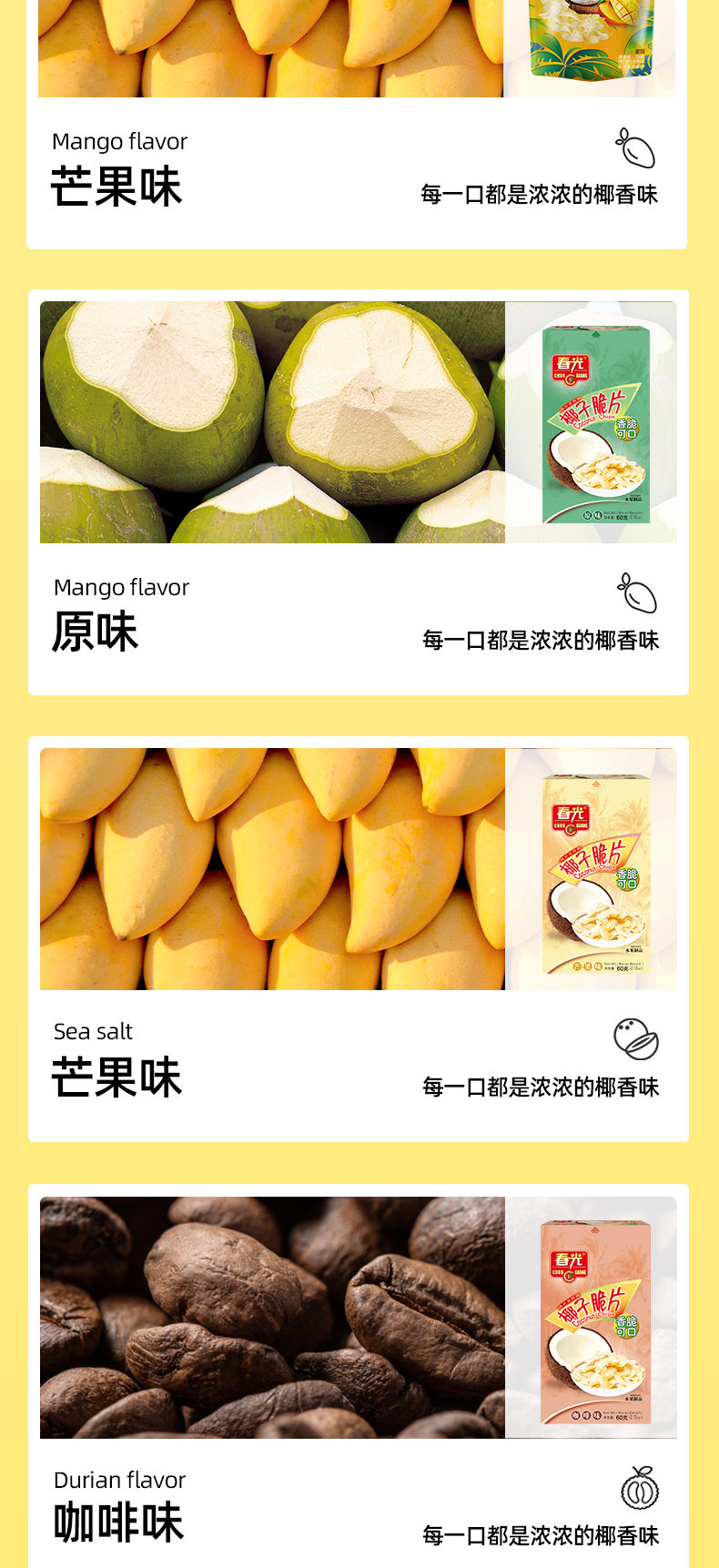 椰子脆片60g盒装 烘烤适度色泽鲜亮
