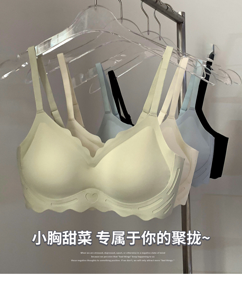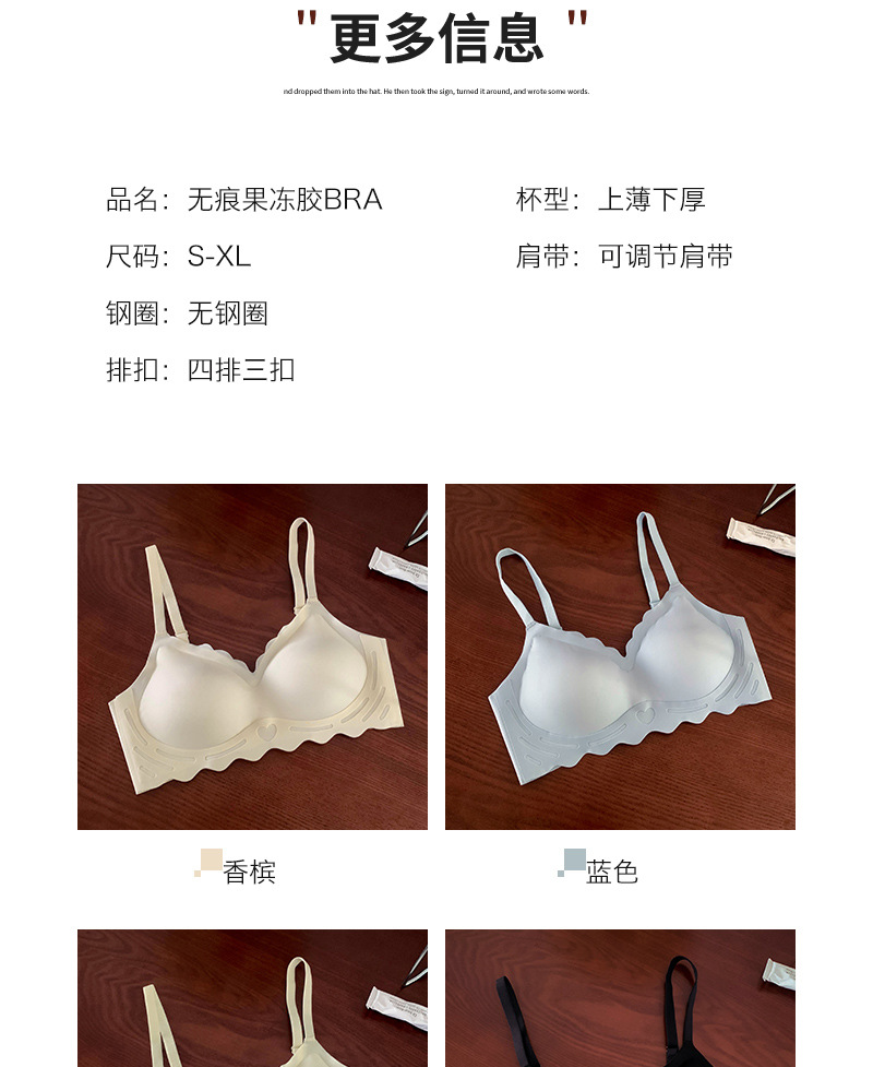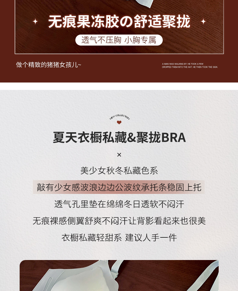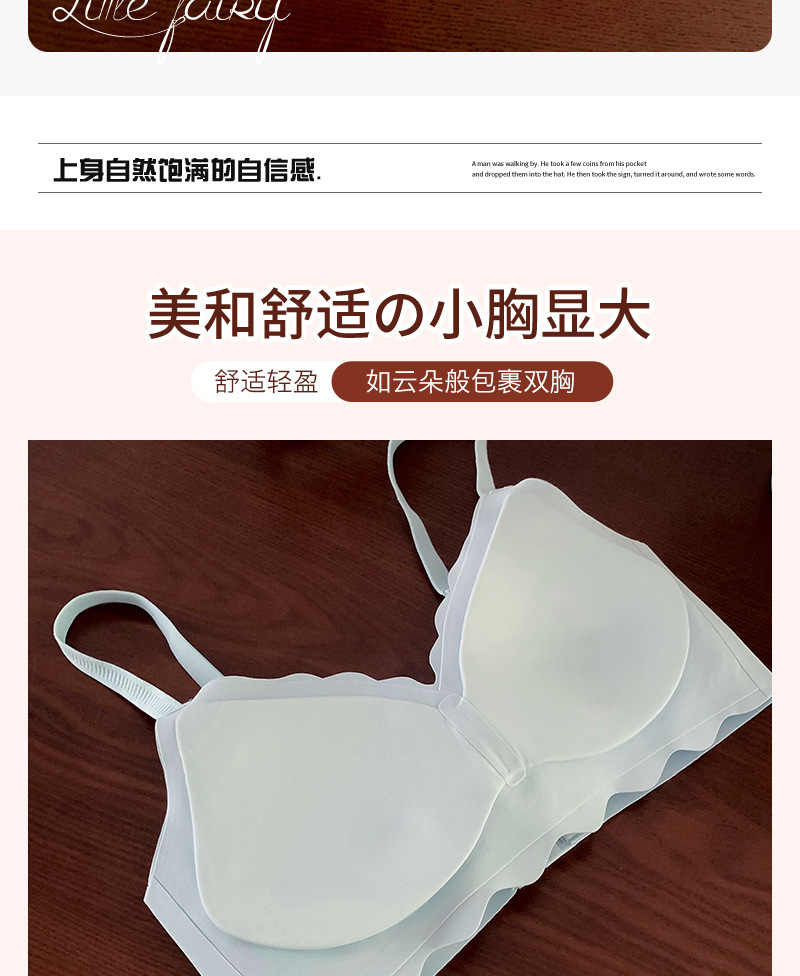 【宛如没穿内衣般舒适,第二件更超值!】小胸聚拢,私藏轻甜;无钢圈托乳,舒适随身;果冻胶杯,治愈你心。少女3D托杯乳胶文胸,尽情展现小胸的魅力!