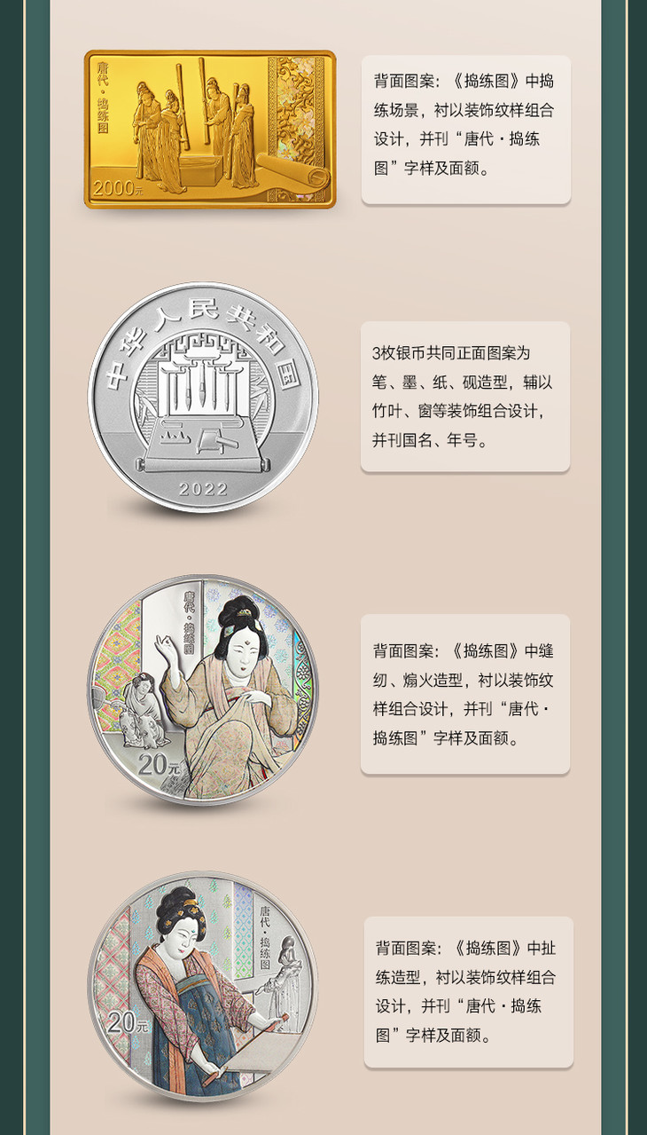 【订金非全款】中国古代名画(捣练图)银套币