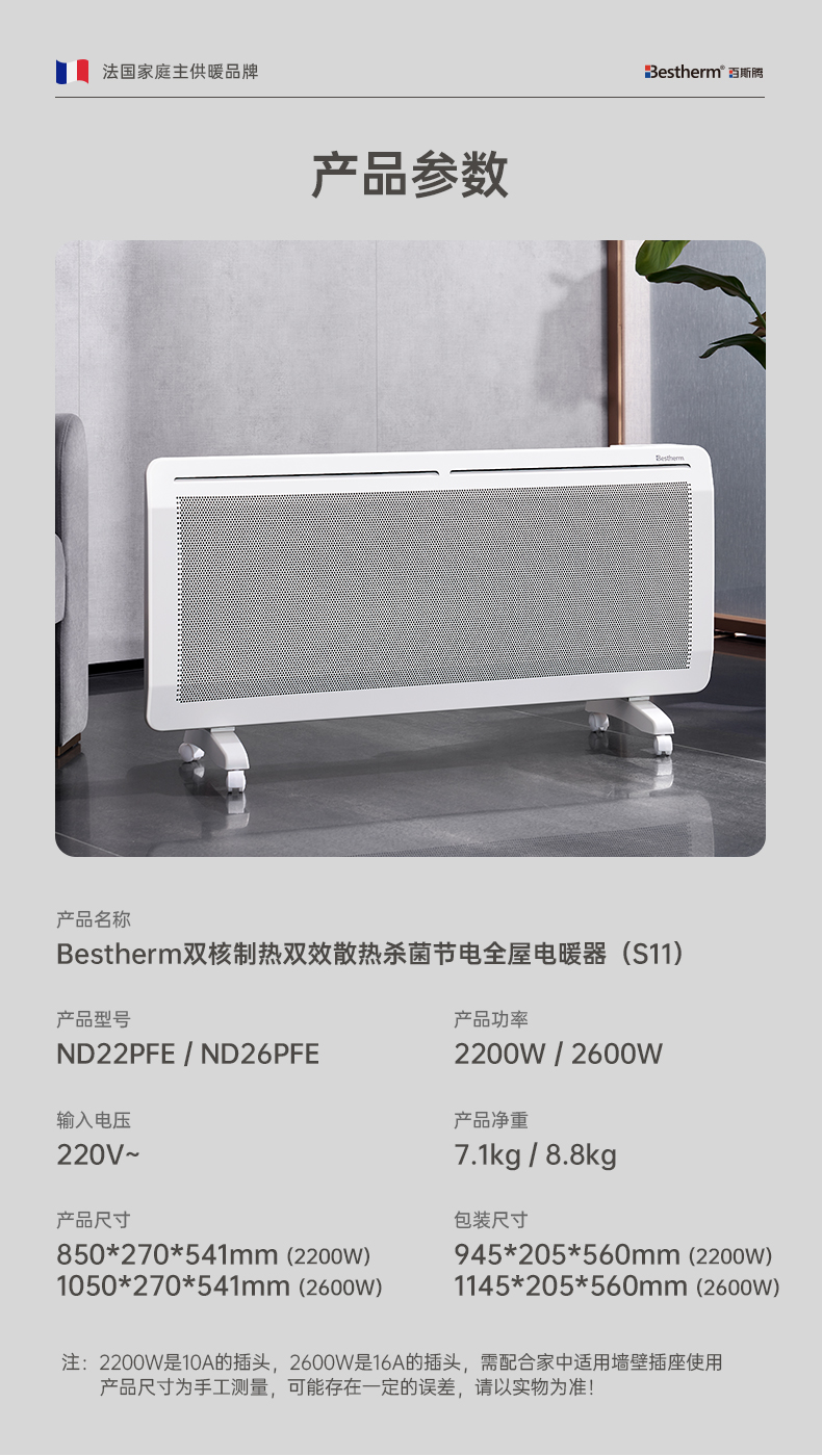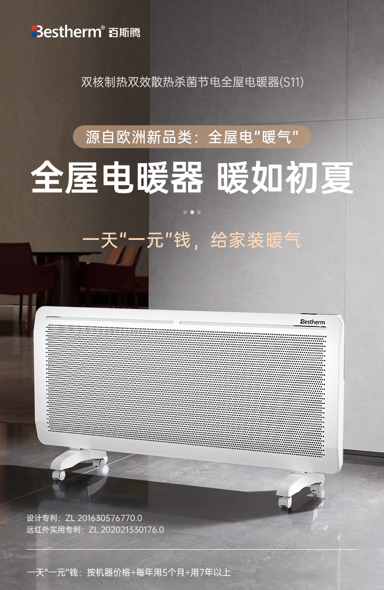 法国百斯腾全屋取暖器家用节能居浴两用电暖气暖风大面积速热S11