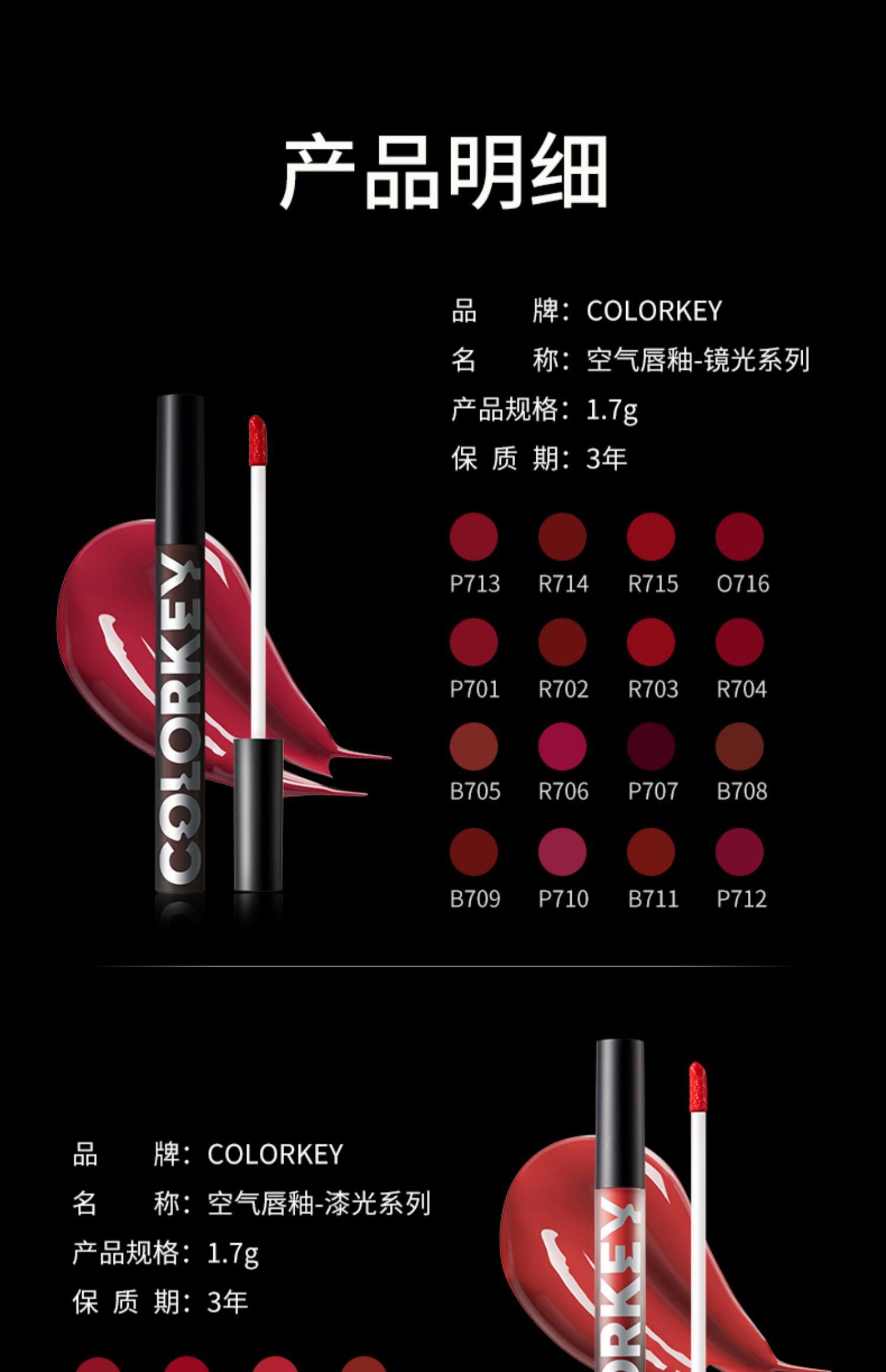 colorkey珂拉琪 小黑镜唇釉镜面漆光唇彩唇蜜口红持久显白