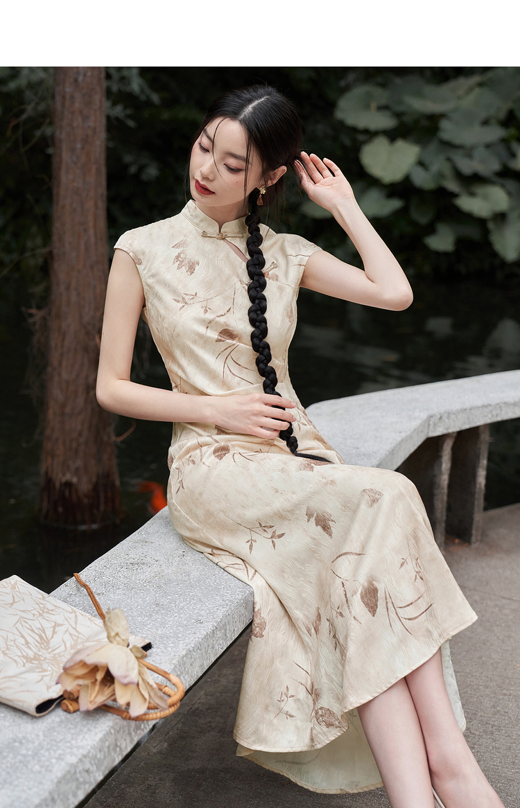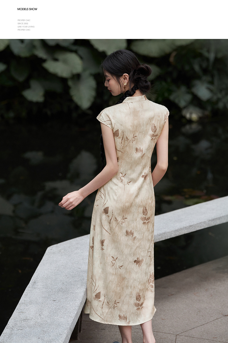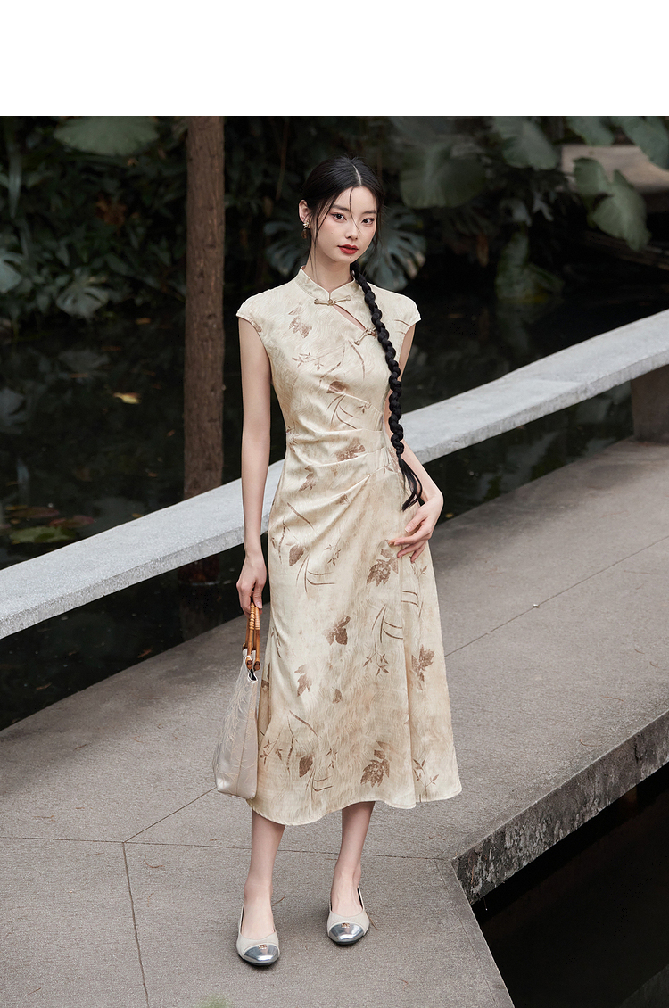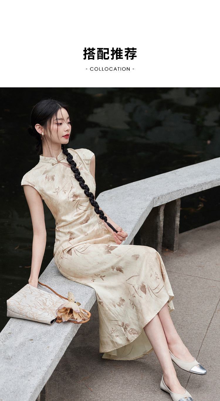 新中式国风立领旗袍无袖连衣裙女春季新款古典温婉长裙V0440187