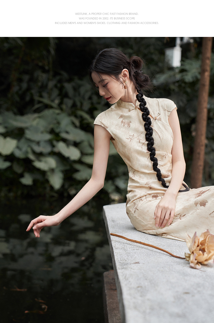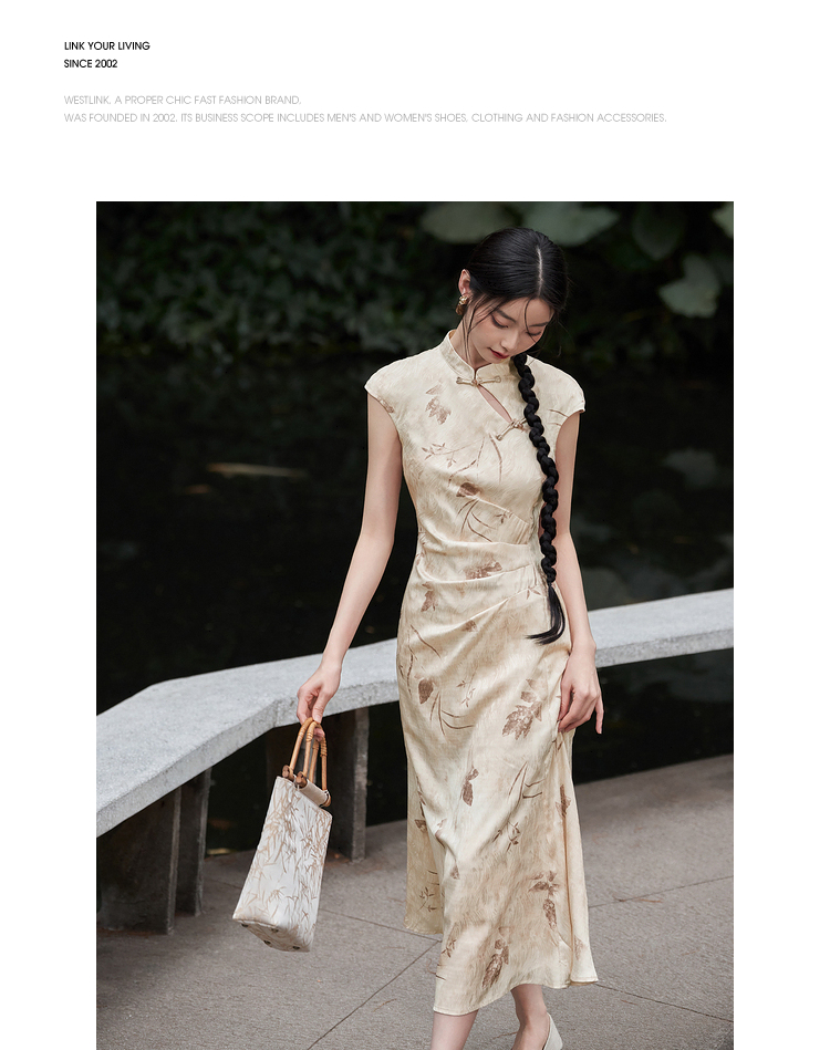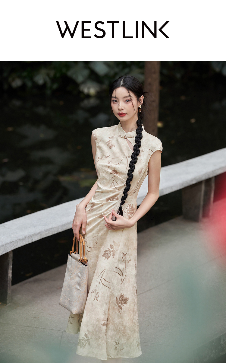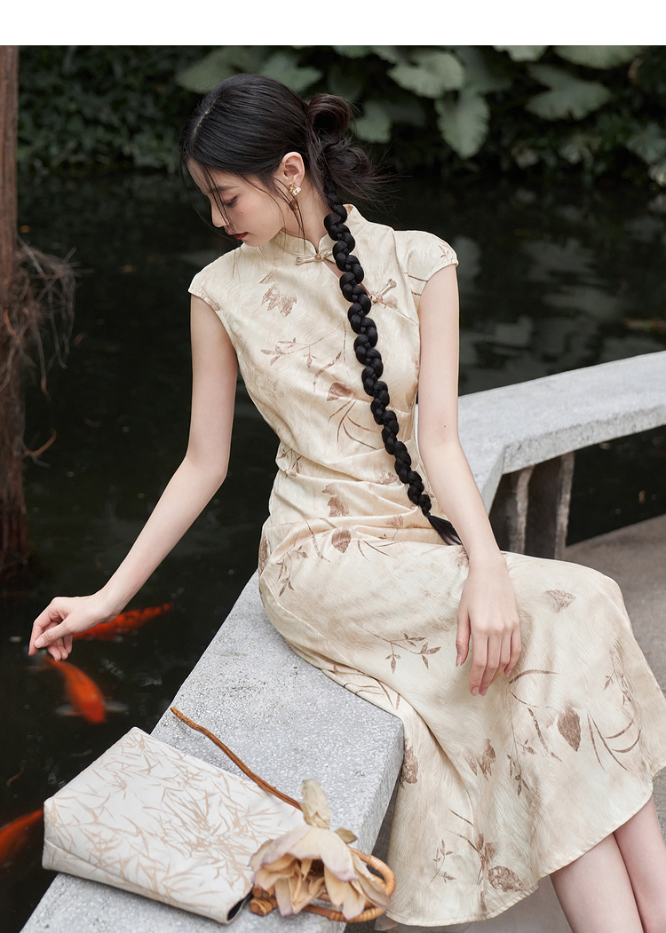 新中式国风立领旗袍无袖连衣裙女春季新款古典温婉长裙V0440187