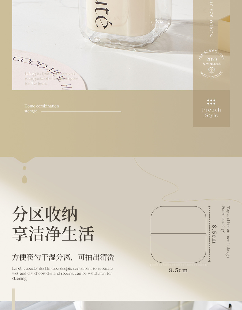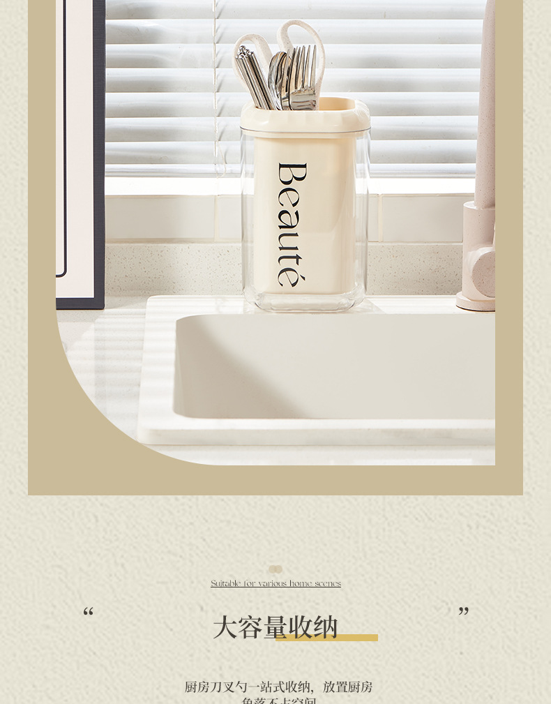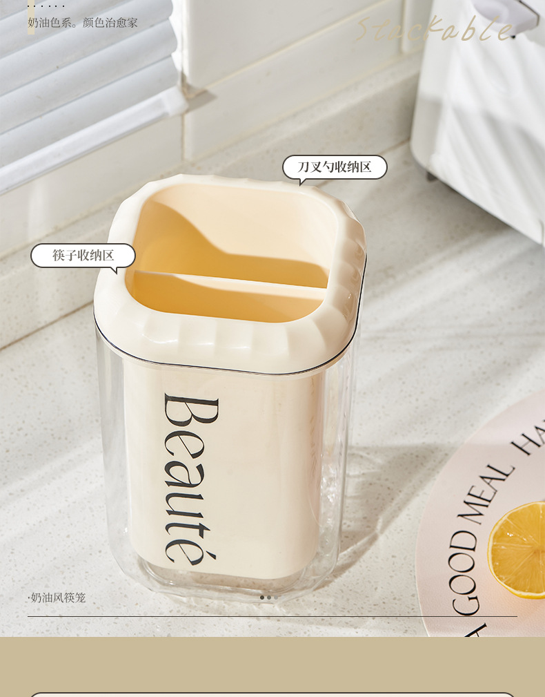 「法式奶油风」奶油风筷子筒厨房用品好物沥水筷笼筷子桶刀叉勺收纳筷子收纳整理盒