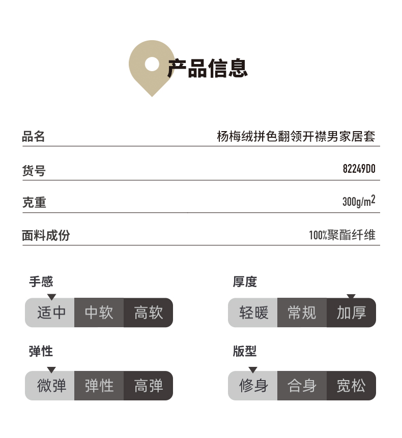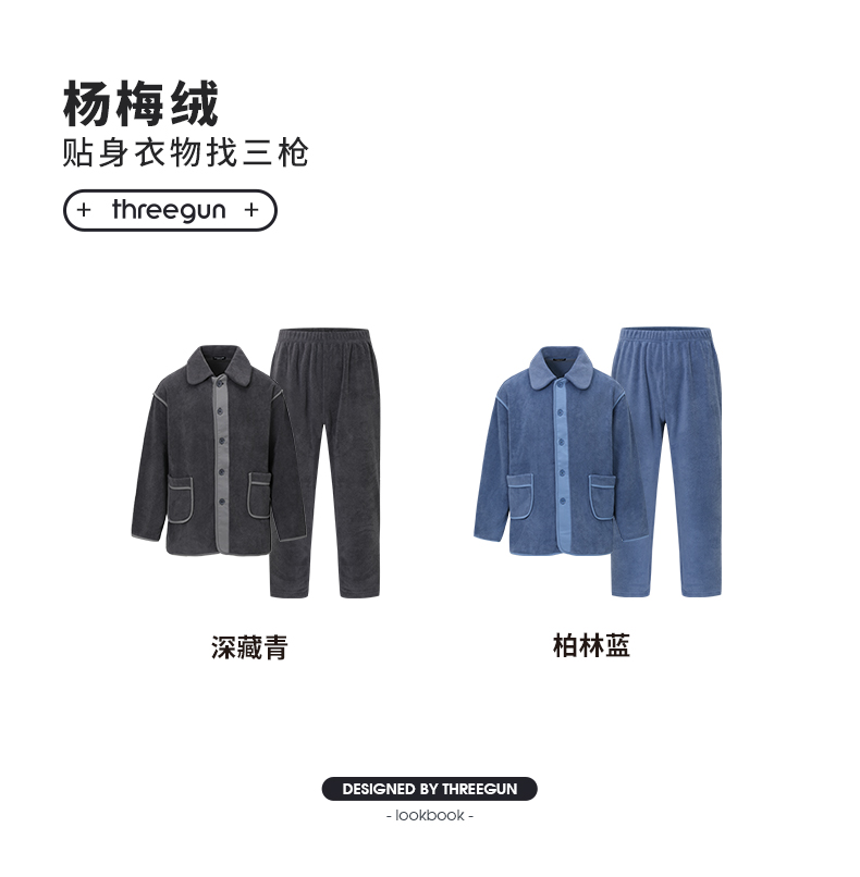 Threegun三枪 杨梅绒拼色翻领开襟男家居套-82249D011