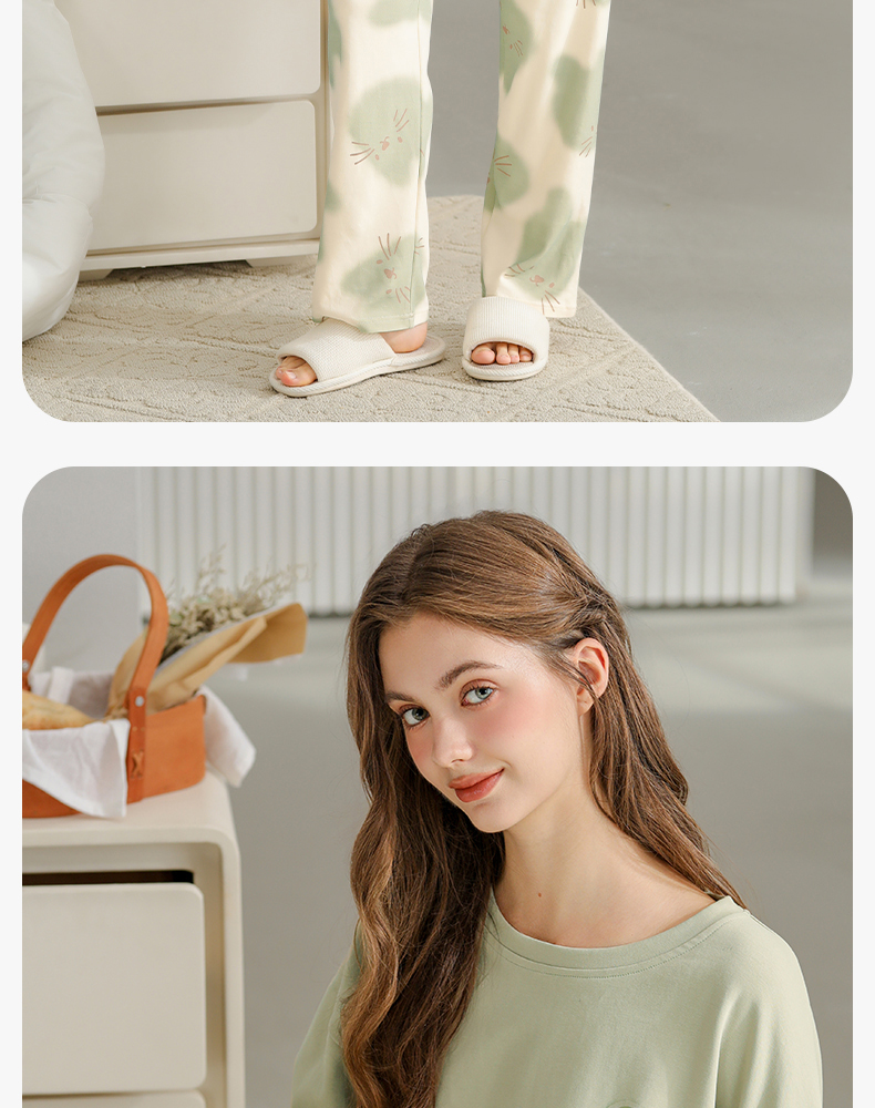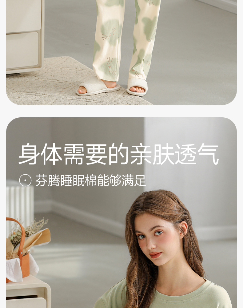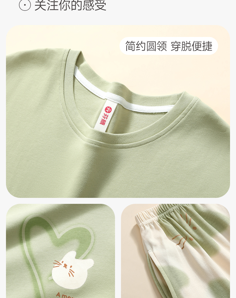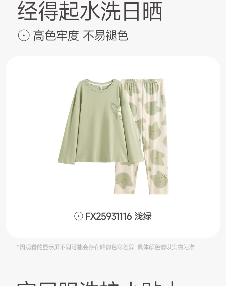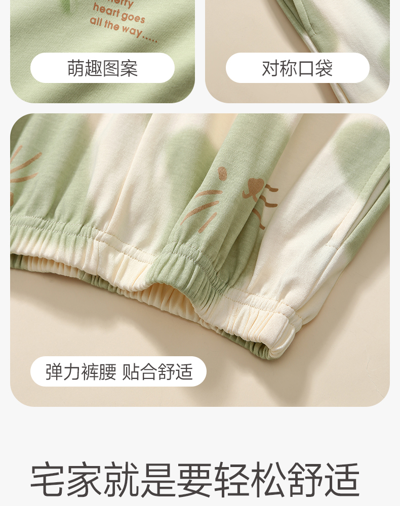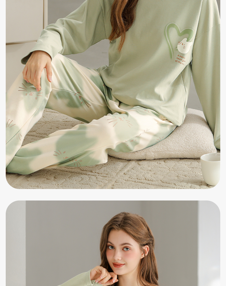 芬腾纯棉春秋季女士睡衣长袖套头套装可爱宽松休闲大码全棉家居服