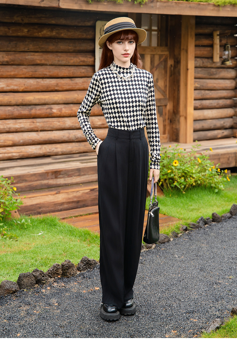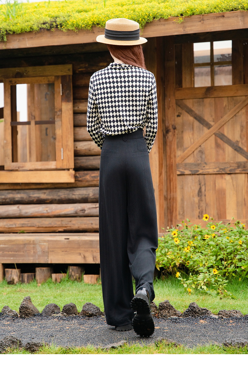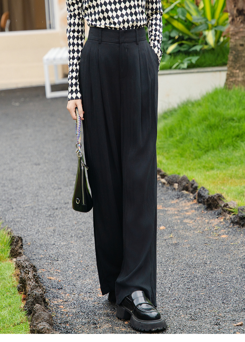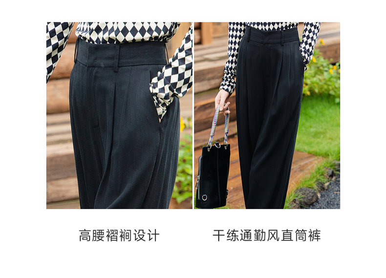 谜底休闲裤女2025秋季新款简约百搭高腰亲肤直筒裤长裤257MK7733