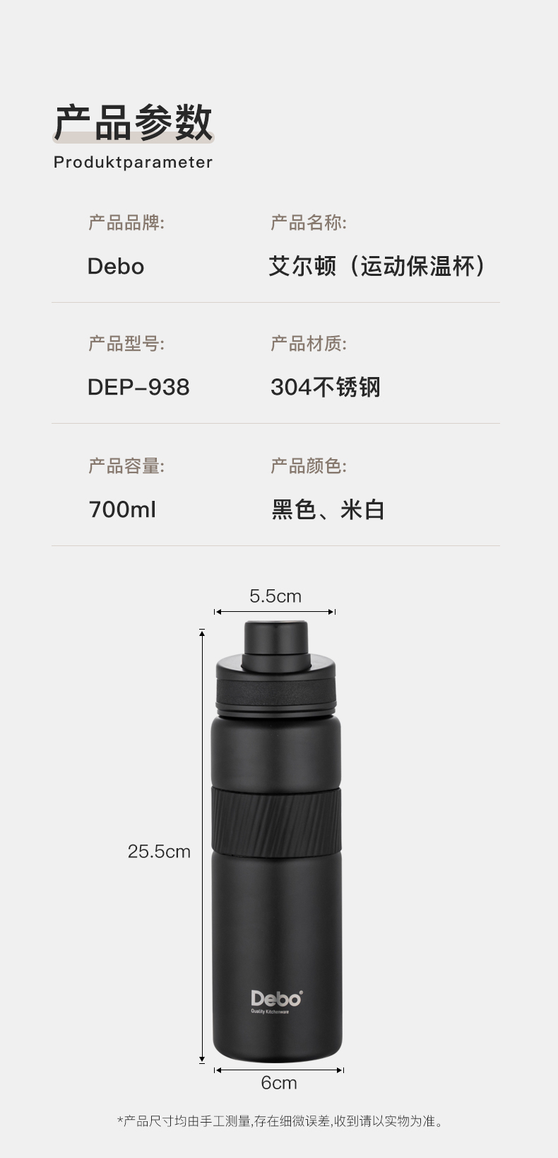 Debo德铂-艾尔顿运动保温杯700ml 三饮用模式 吸管直饮/小口啜饮/大口畅饮随心切换