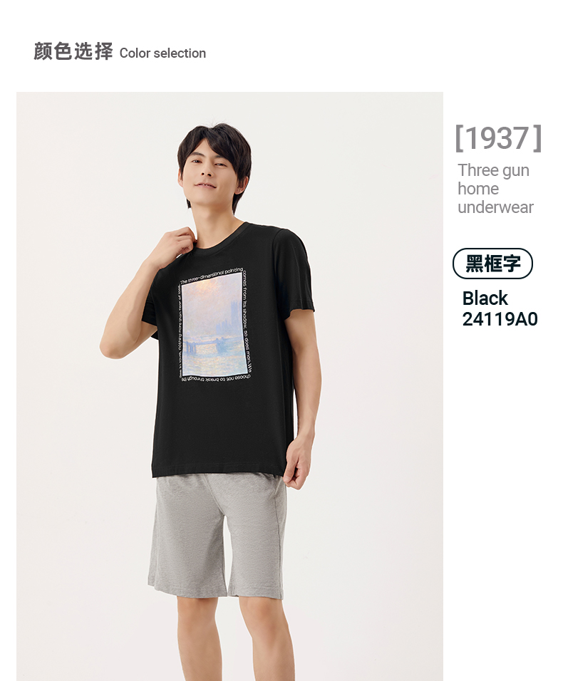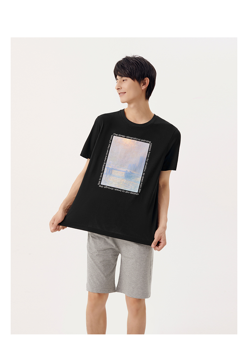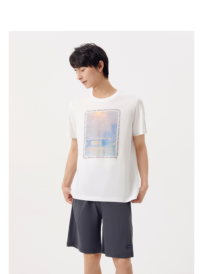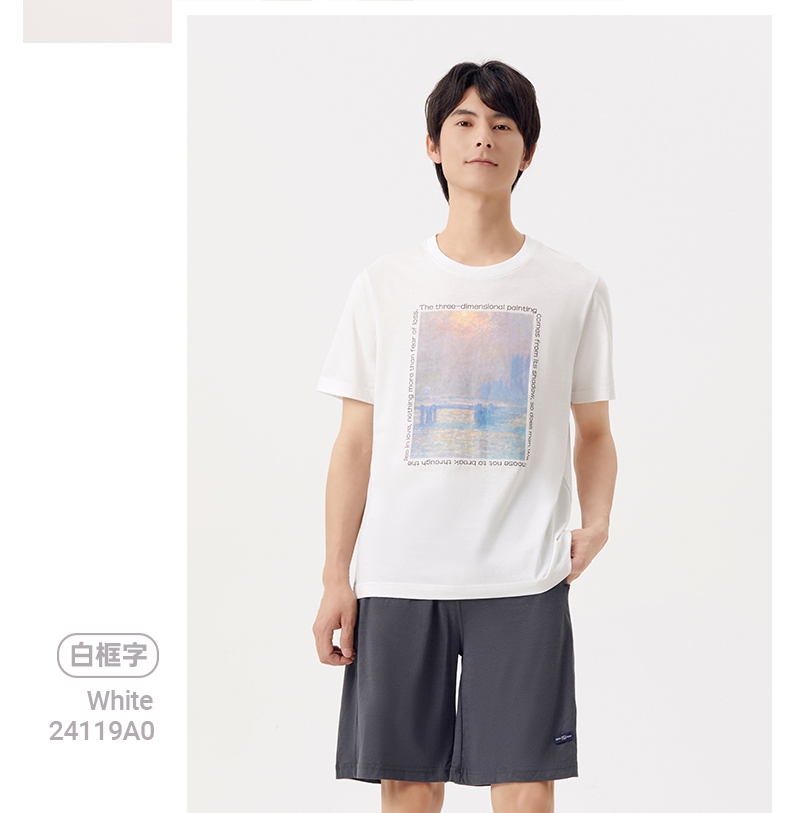 Threegun三枪 【丝感棉】男士短袖T恤(莫奈联名款)-24119A011