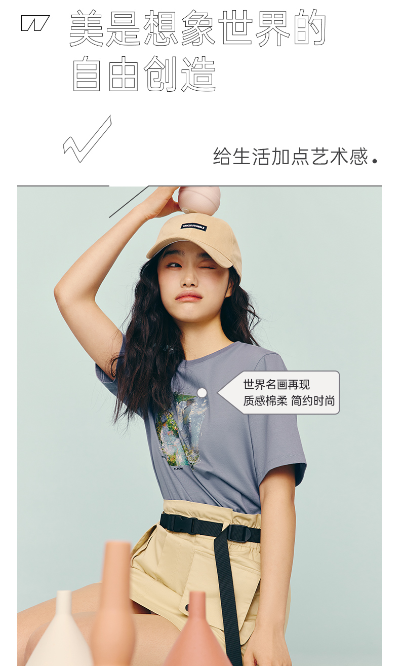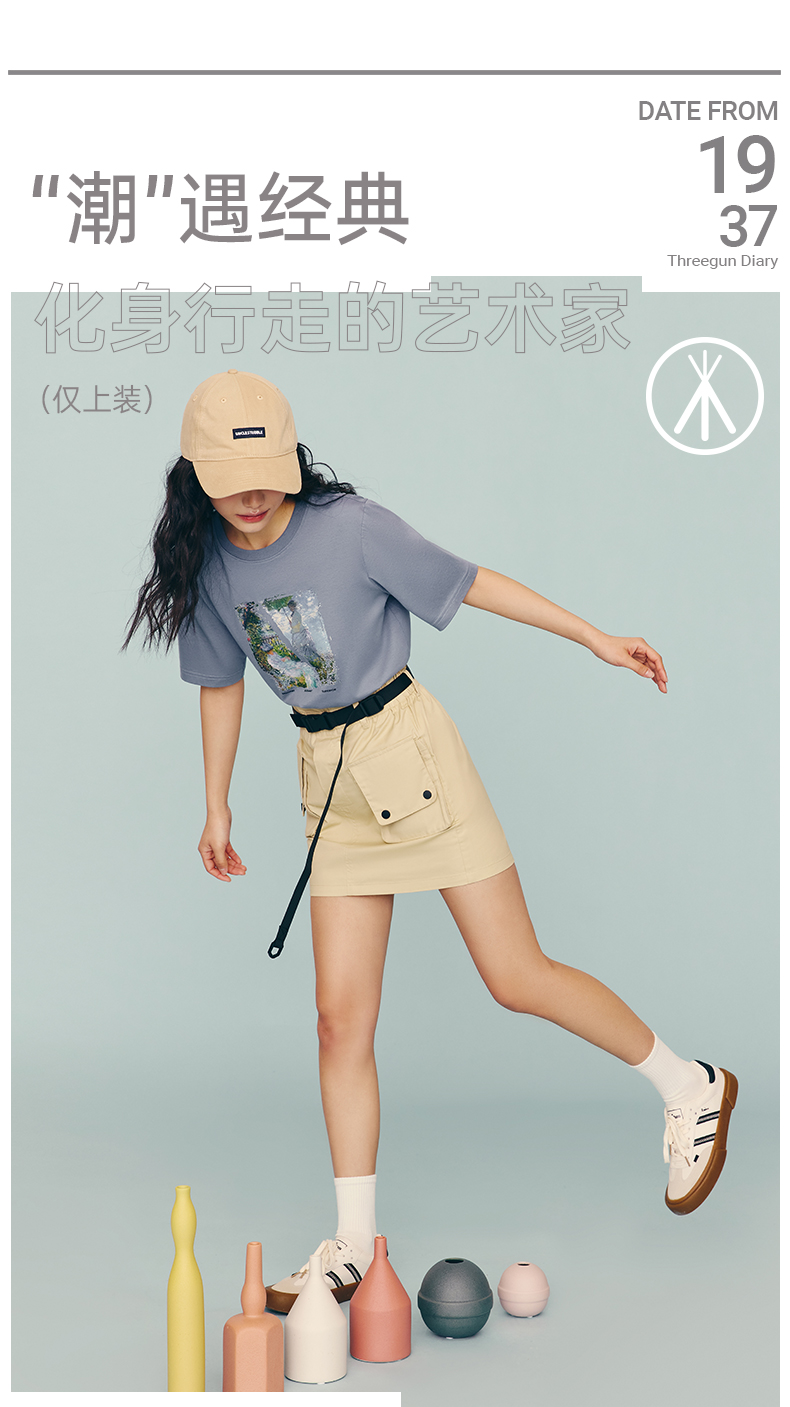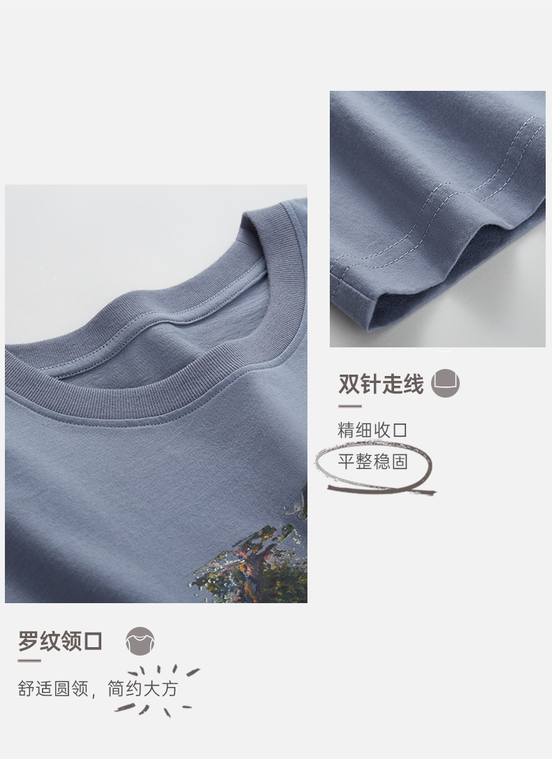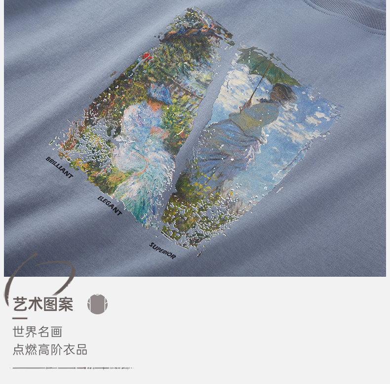 Threegun三枪 【丝感棉】男士短袖T恤(莫奈联名款)-24119A011
