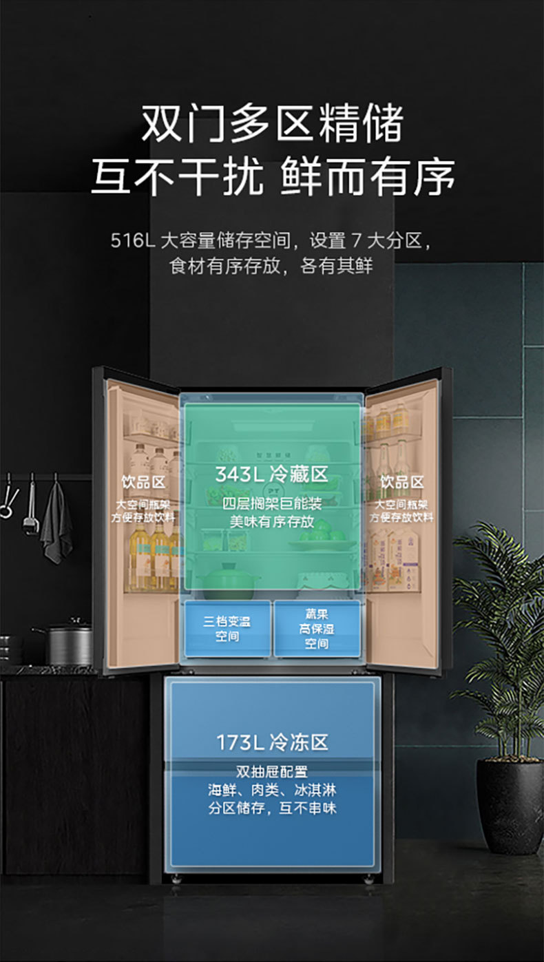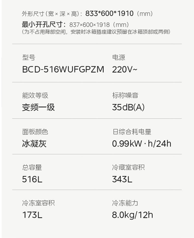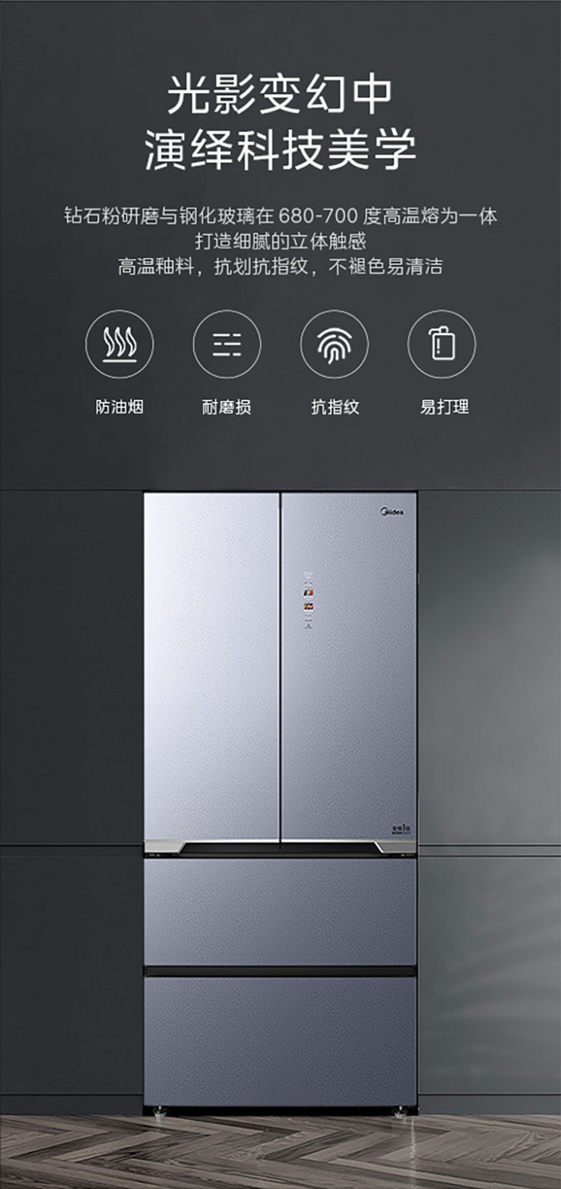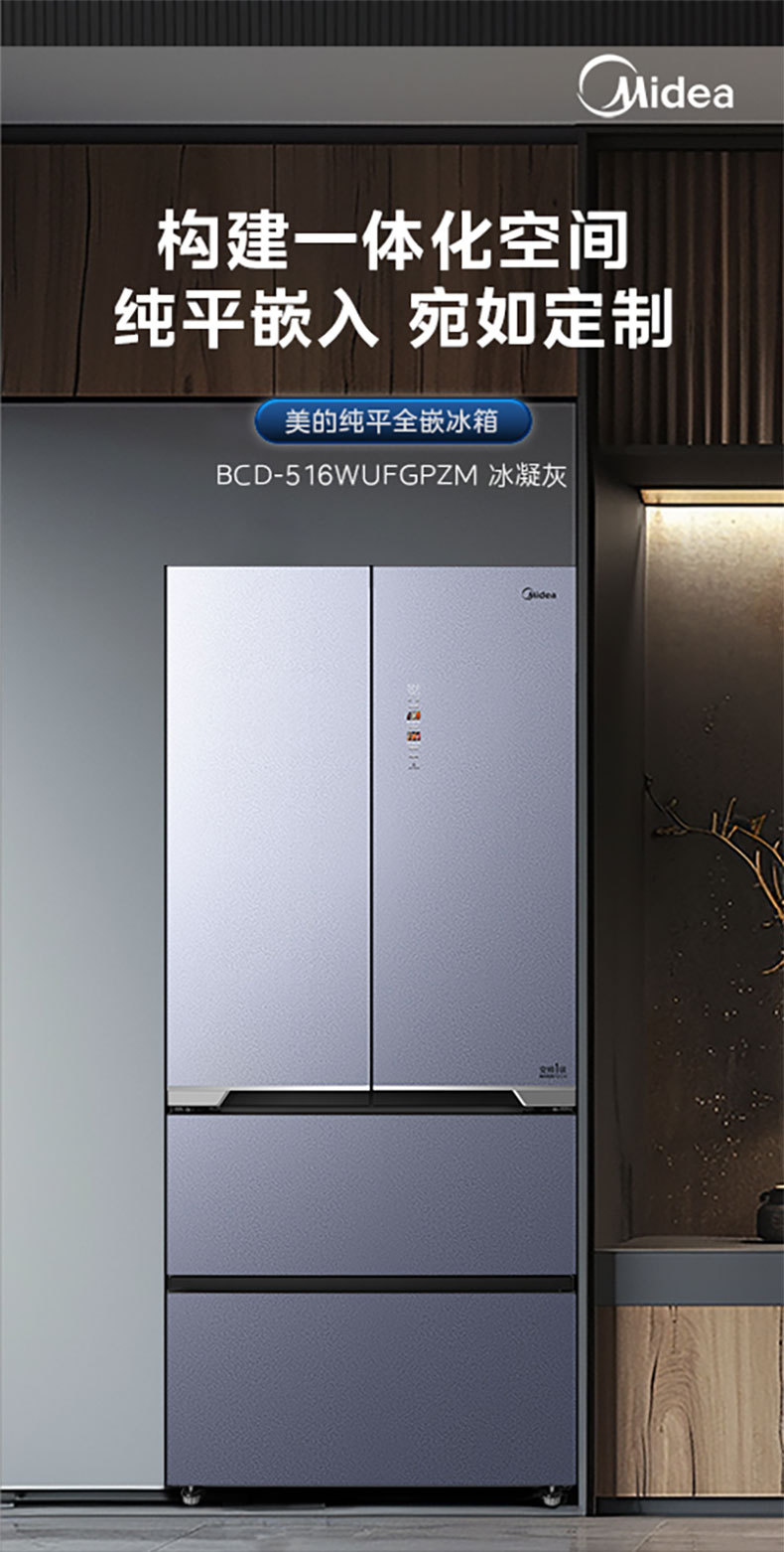 美的 冰箱 BCD-516WUFGPZM 冰凝灰