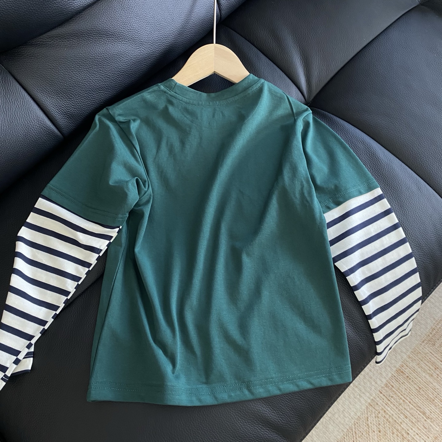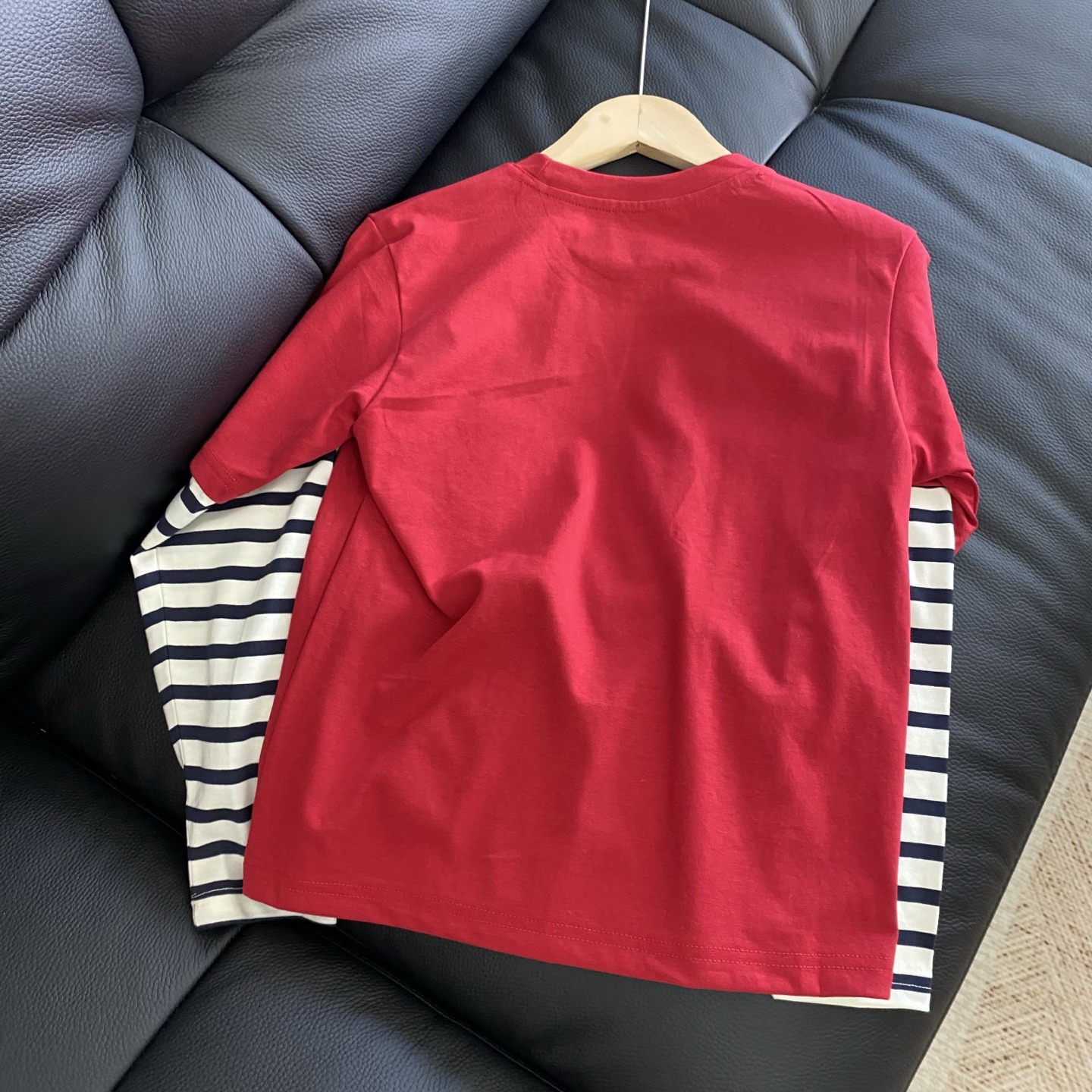 这款假两件长袖T恤穿在娃身上、