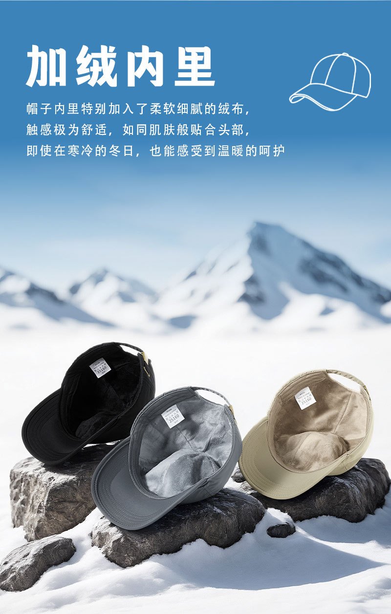 秋冬新品加绒棒球帽男款速干防水保暖鸭舌帽户外防寒毛绒帽子定制