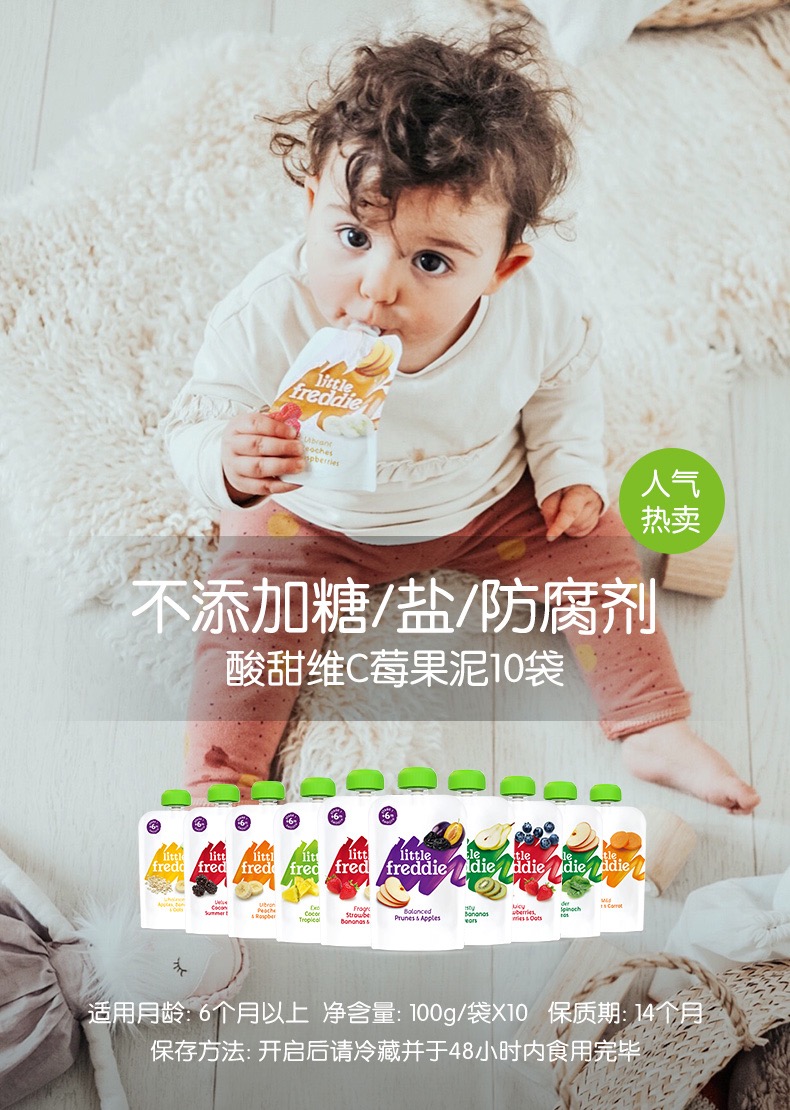 小皮Little Freddie 婴儿宝宝辅食水果汁蔬菜泥吸吸袋 夏日莓果椰蓉(6个月+) 100g