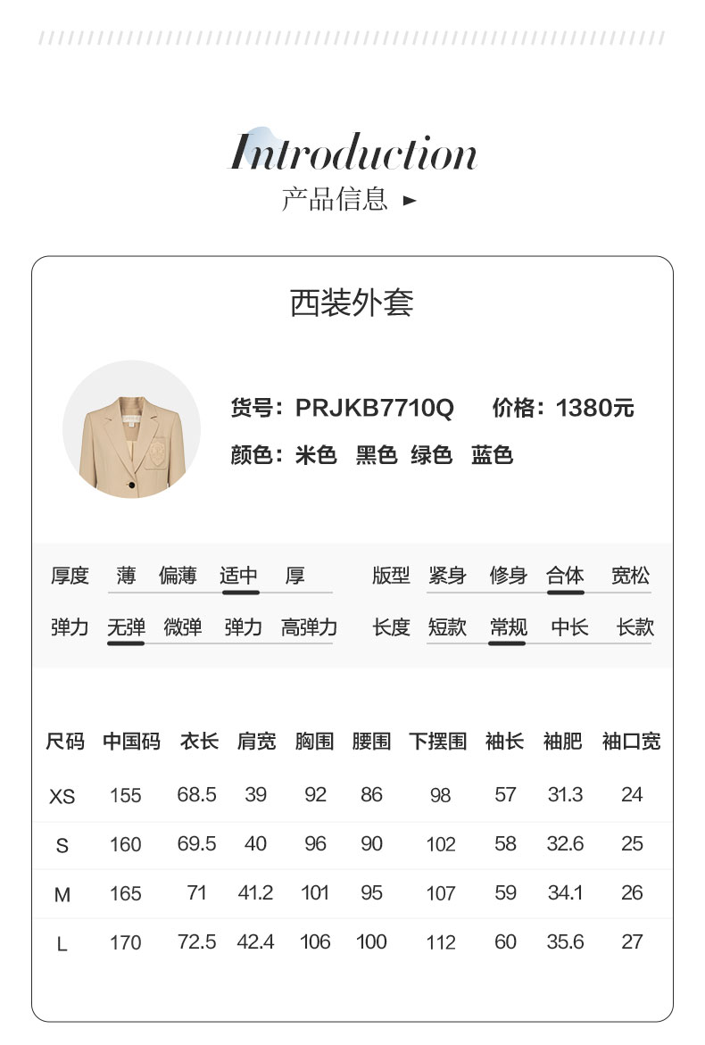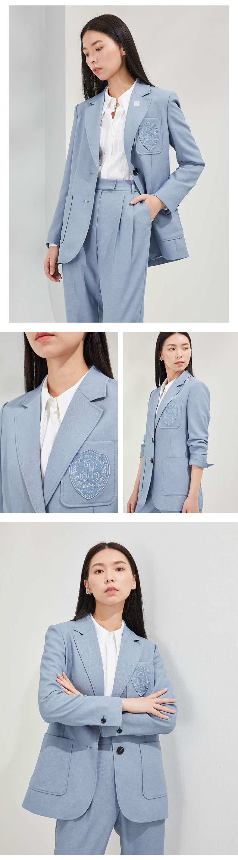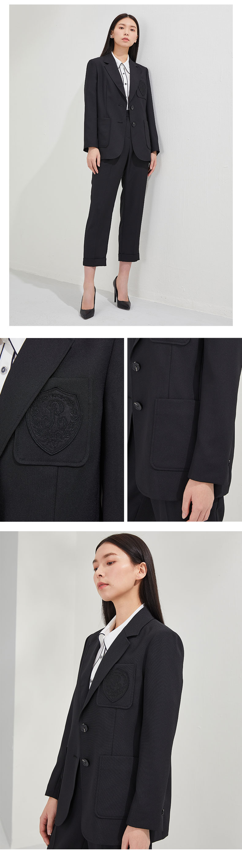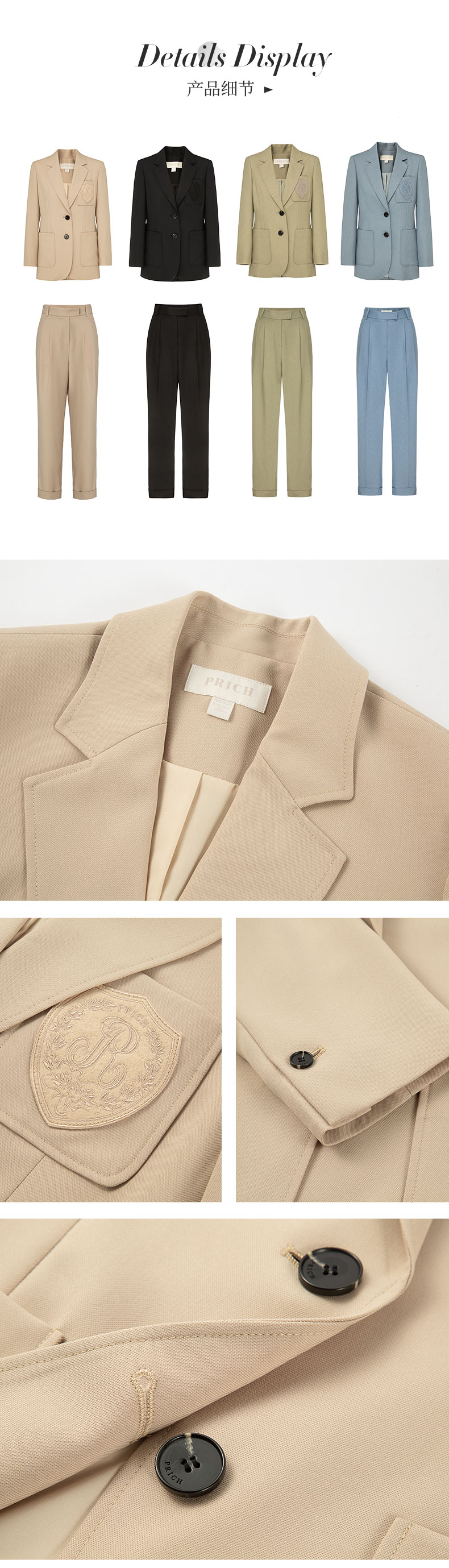 PRICH2021年秋季新款韩版宽松ⅴ领职业设计感西装外套女PRJKB7710Q
