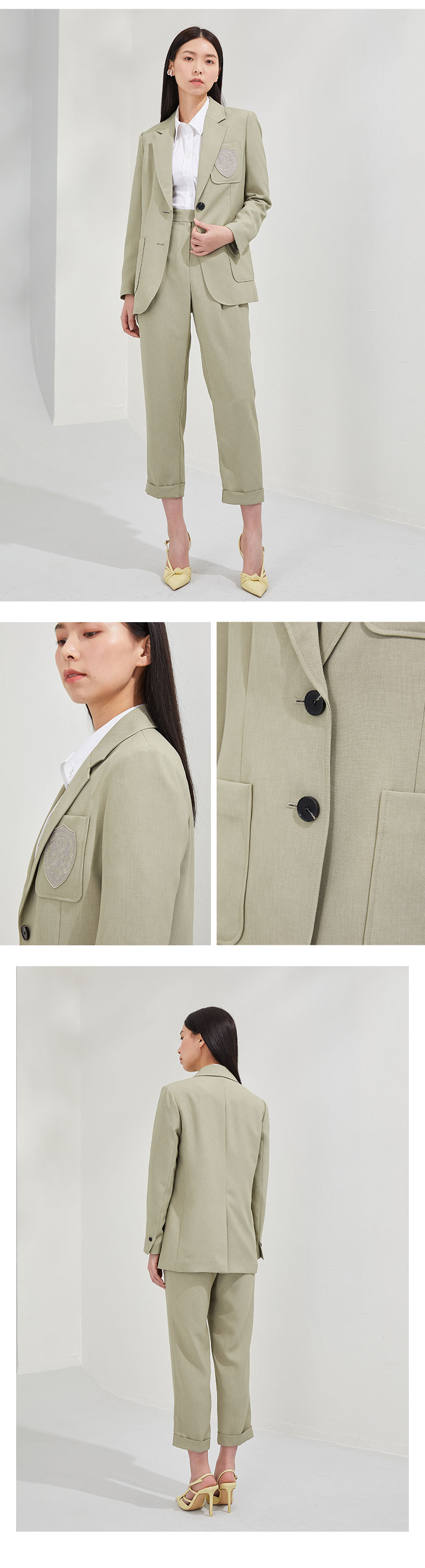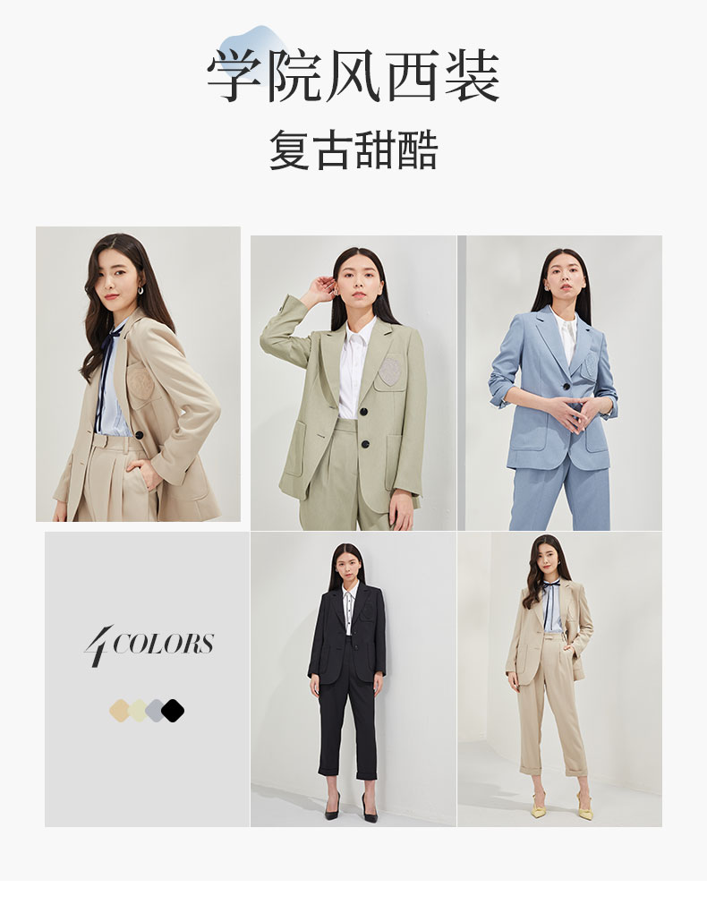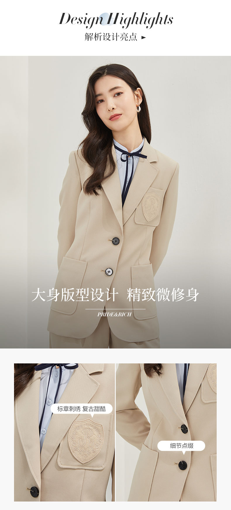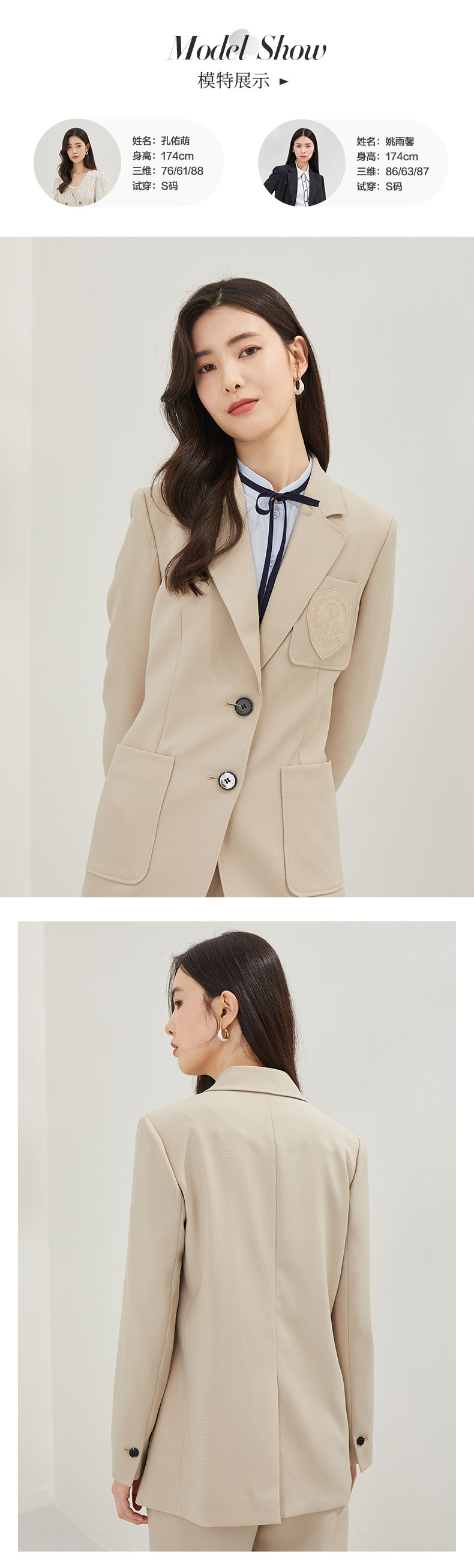 PRICH2021年秋季新款韩版宽松ⅴ领职业设计感西装外套女PRJKB7710Q