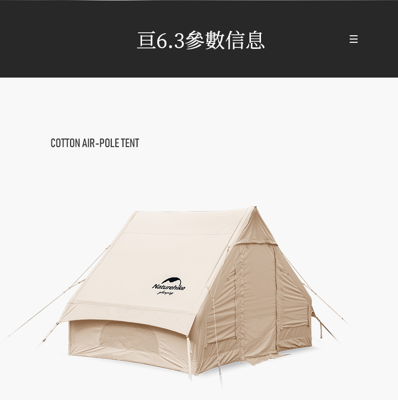 【已下架】预售 | Naturehike挪客Glamping亘Air6.3棉布充气帐篷 印第安户外野营加厚豪华别墅[福利品]