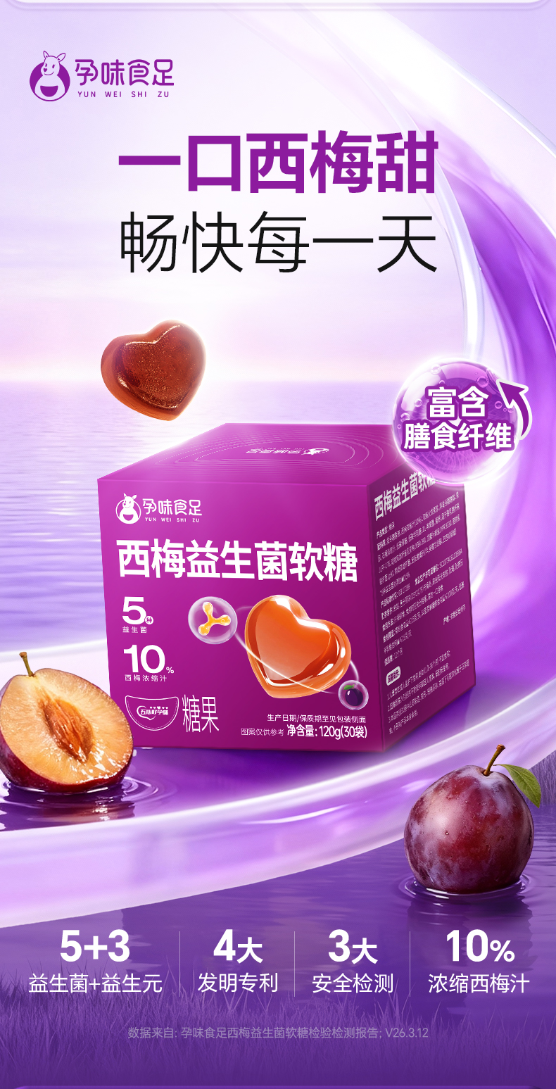 孕味食足孕妇西梅益生菌软糖浓缩西梅汁富含膳食纤维西梅软糖零食