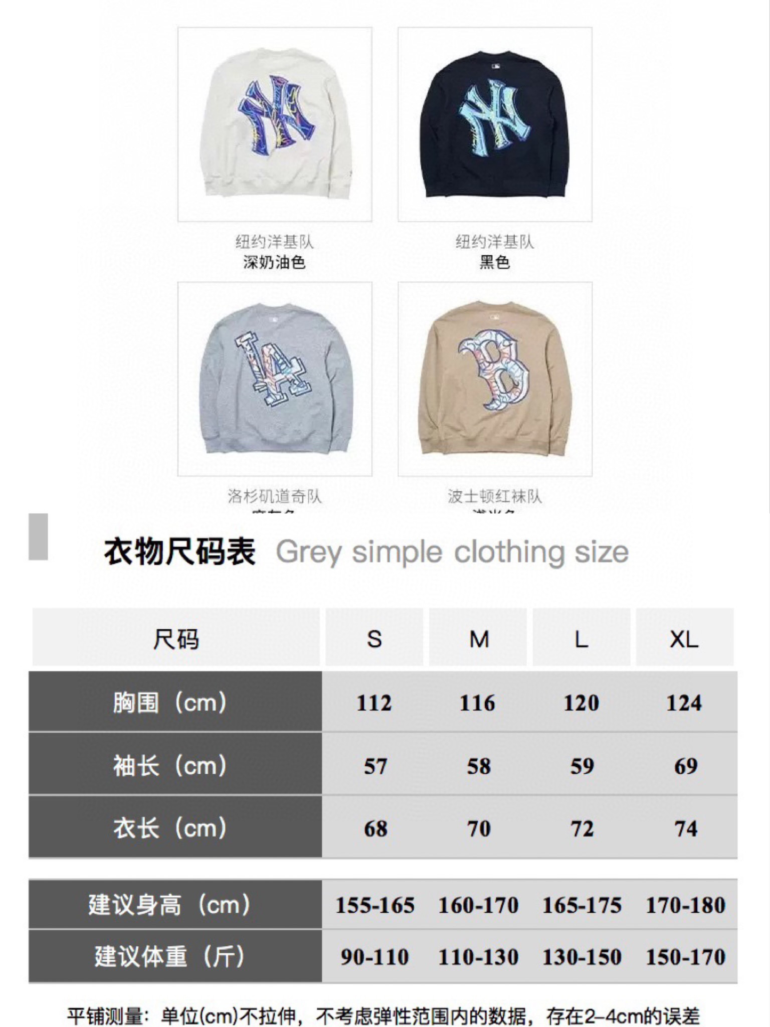 尺码表及建议体重范围
