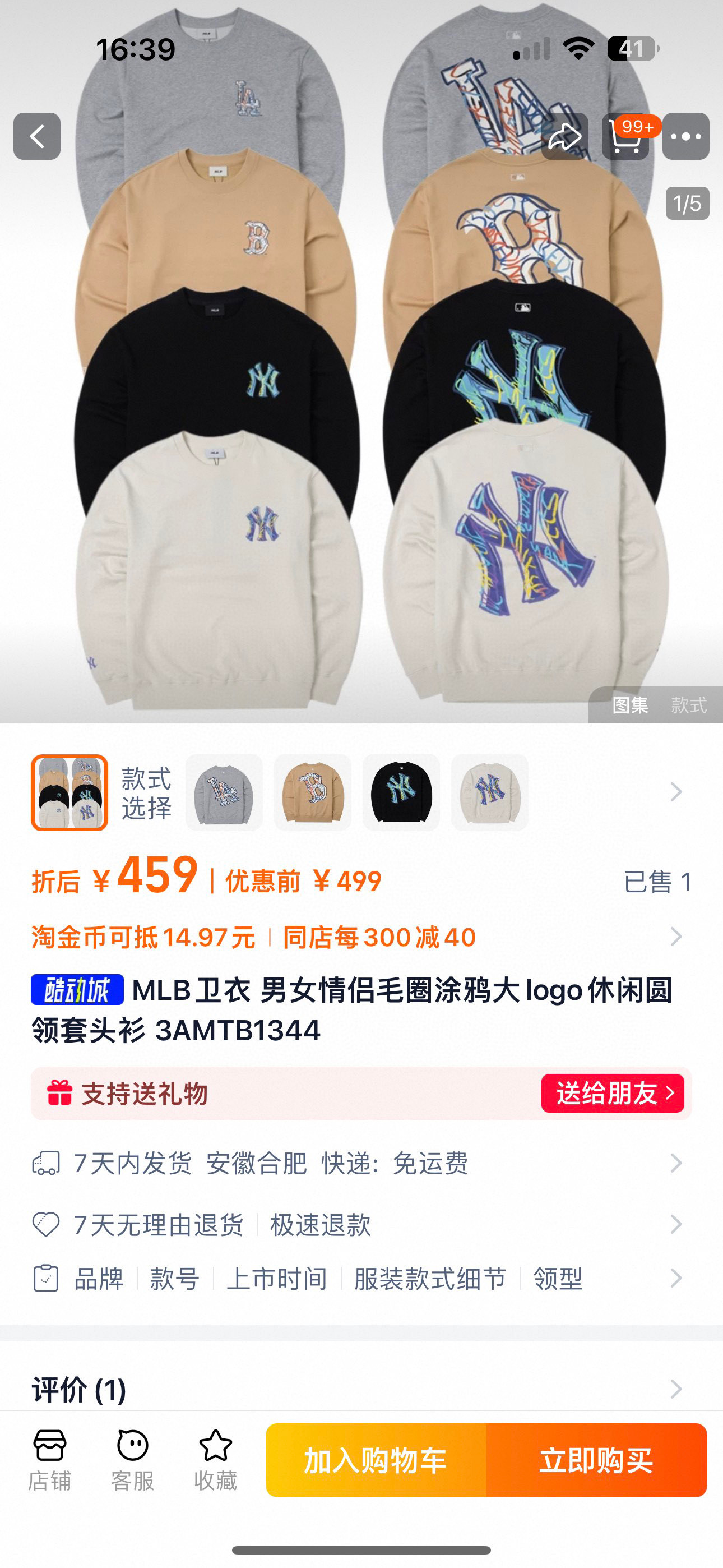 💰128元包邮, 【MLB正品授权 】 一衣一码支持扫码验货 当季新款情侣卫衣