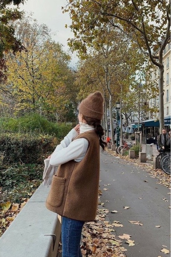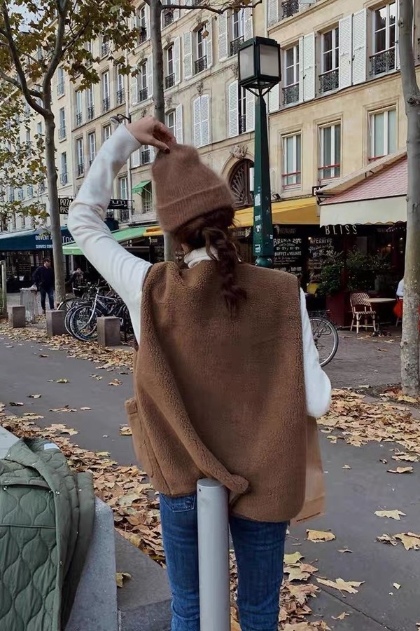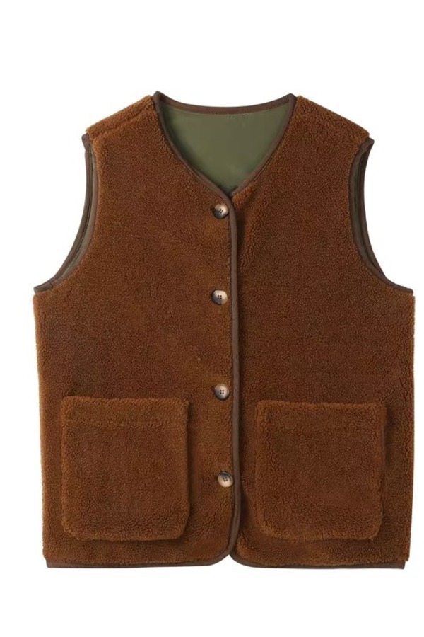 Kai & Kiera 棕色羊羔毛马甲外套 15006