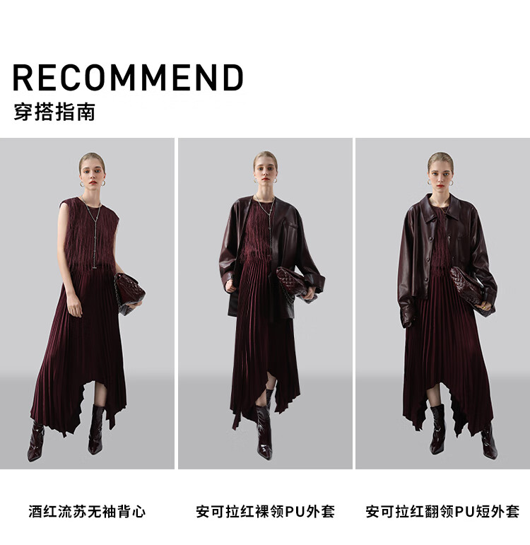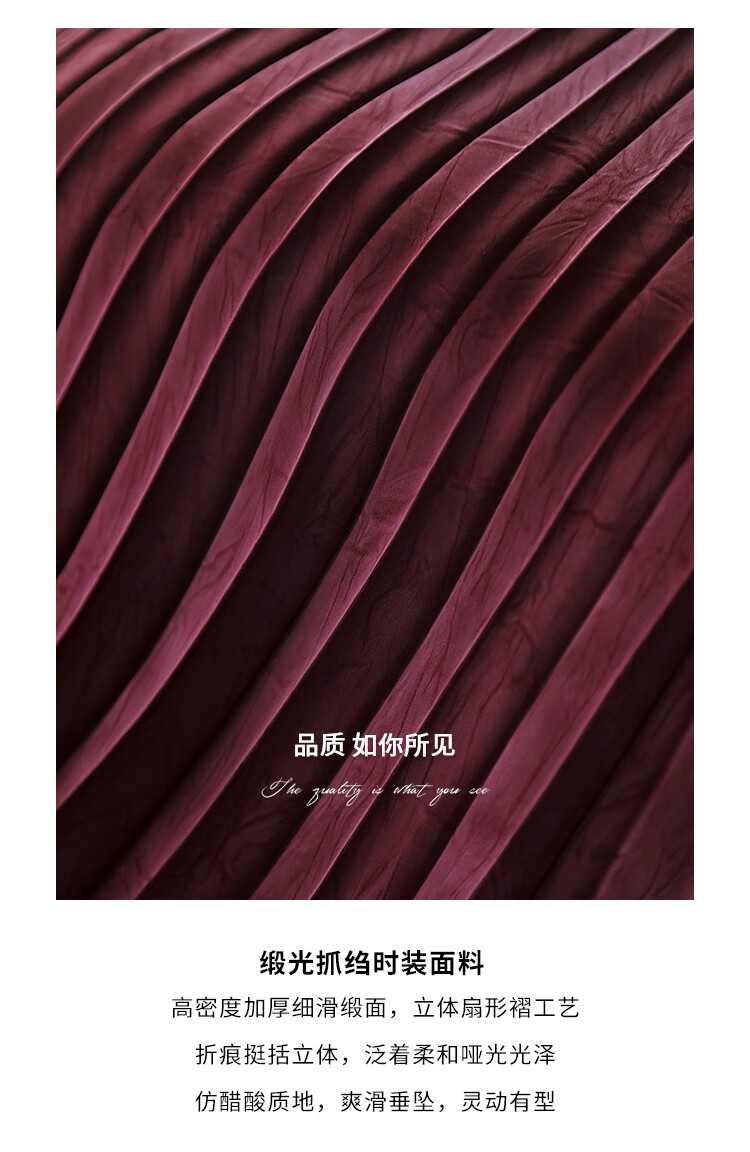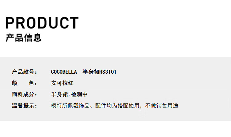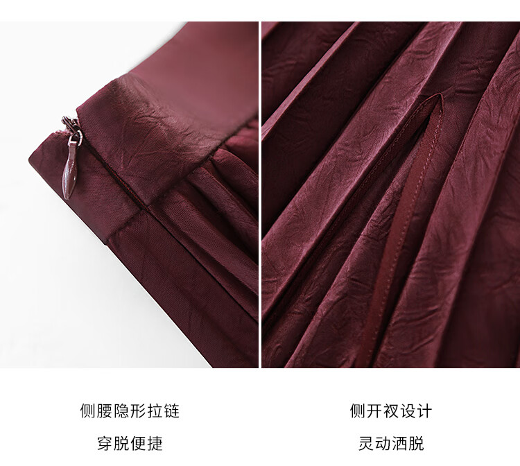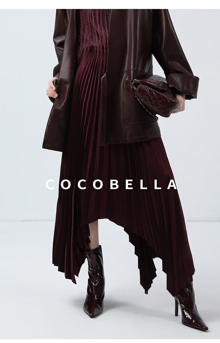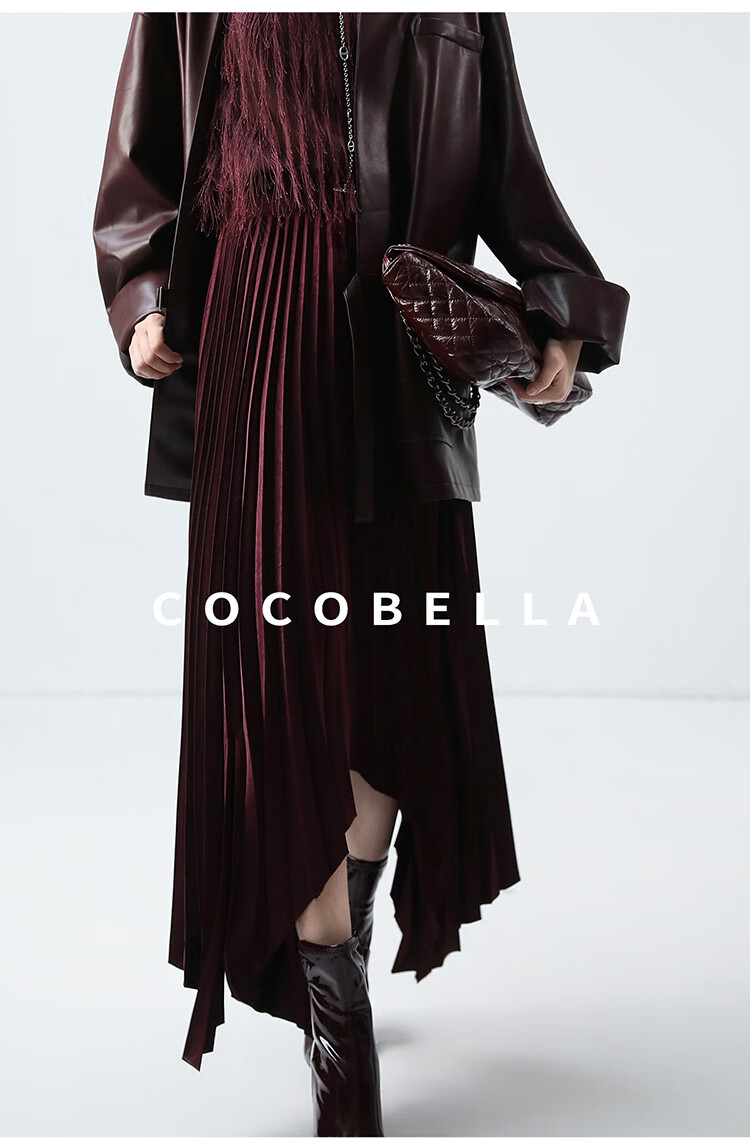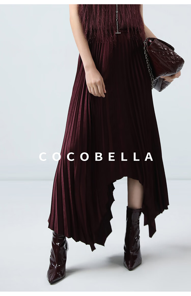 【秒杀】COCOBELLA安可拉红不规则压褶半身裙气质开叉新年半裙HS3101