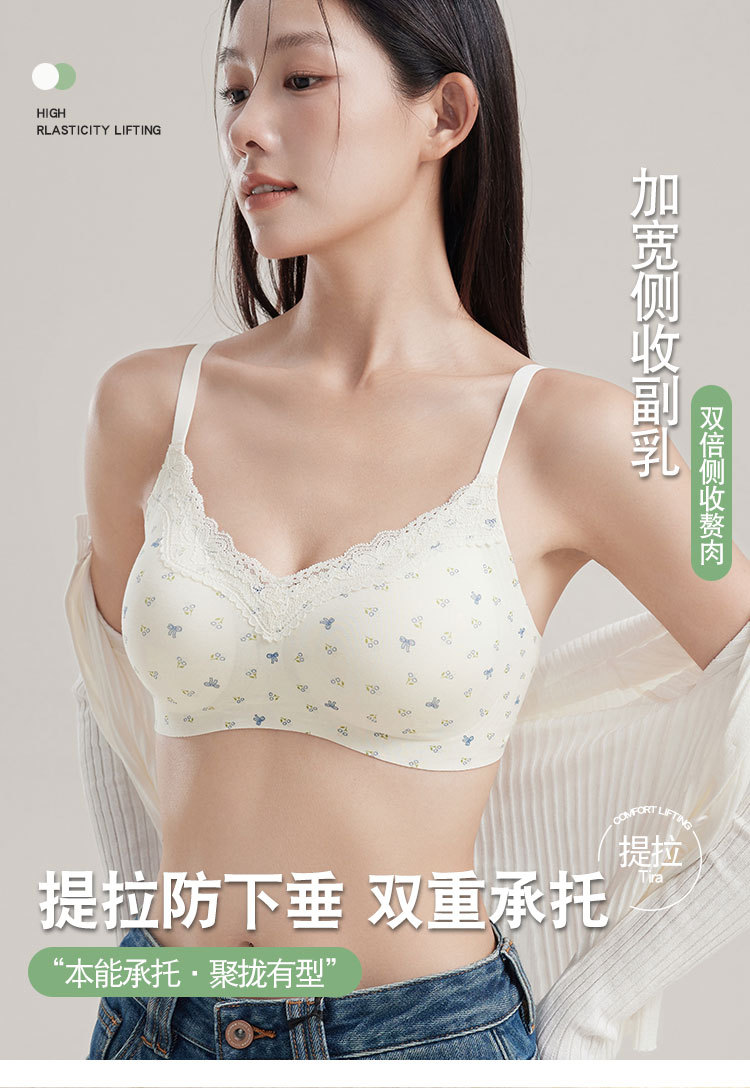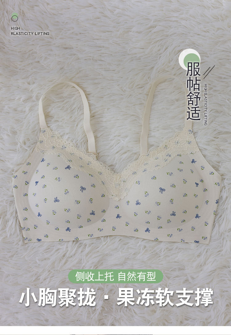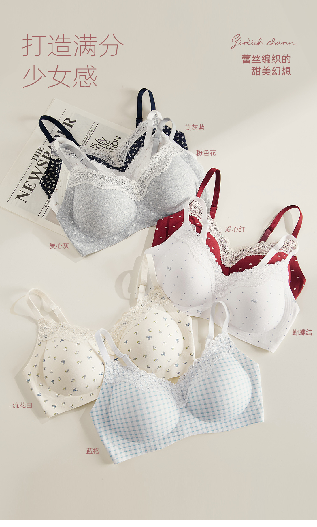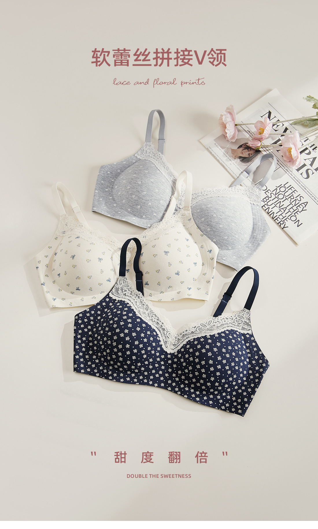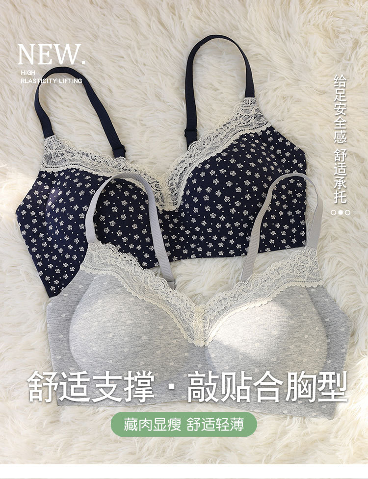 【新年!俏皮少女美学内衣套装】蕾丝纯棉内衣 女小胸聚拢薄款无钢圈 舒适透气甜美碎花无痕 少女文胸套装