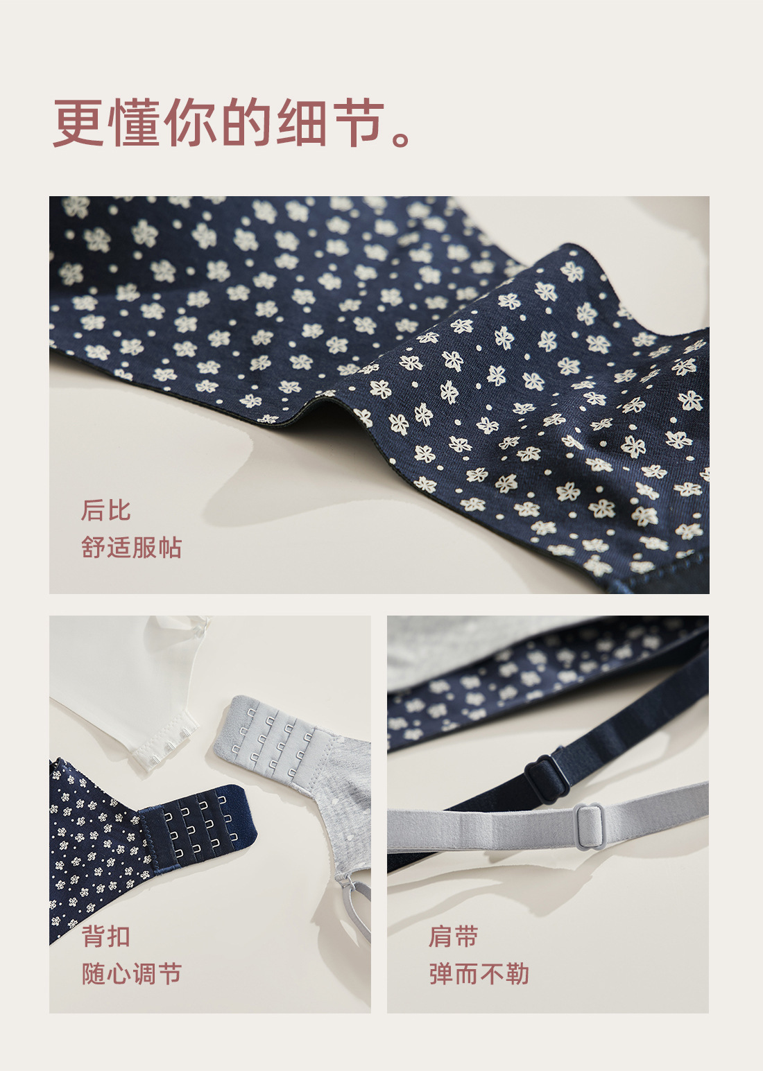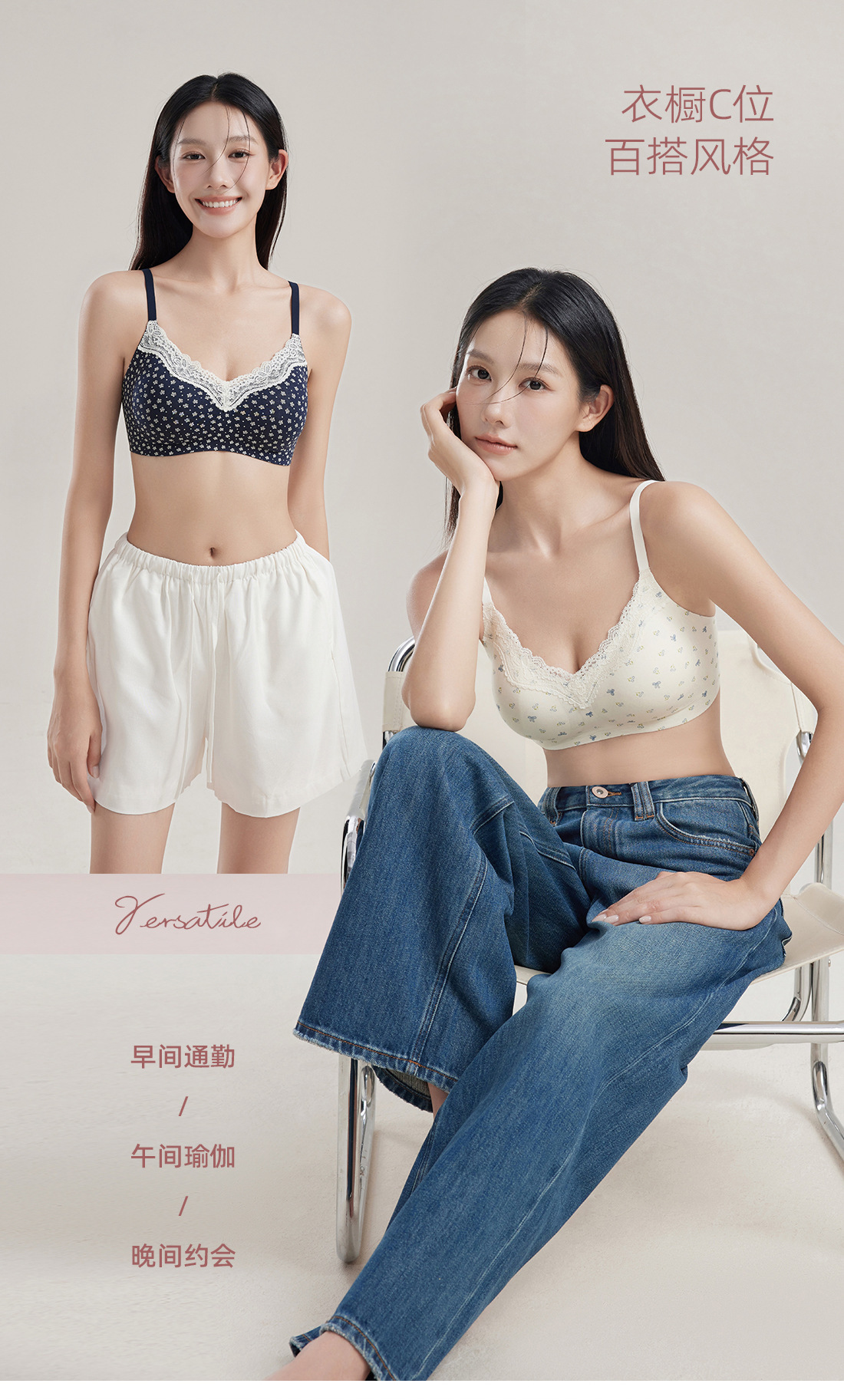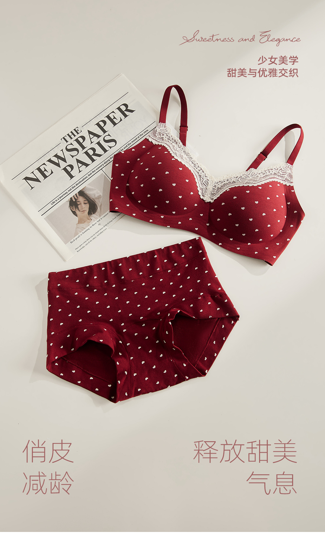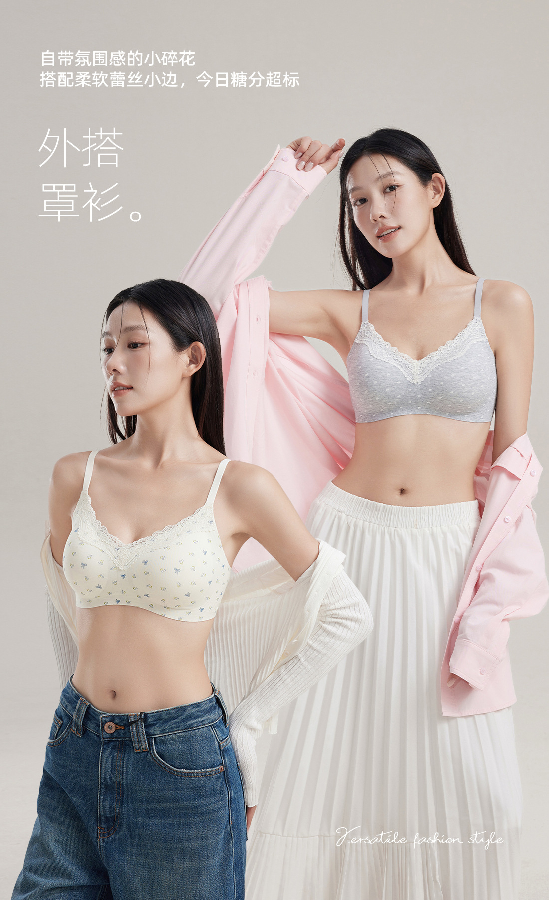 【新年!俏皮少女美学内衣套装】蕾丝纯棉内衣 女小胸聚拢薄款无钢圈 舒适透气甜美碎花无痕 少女文胸套装