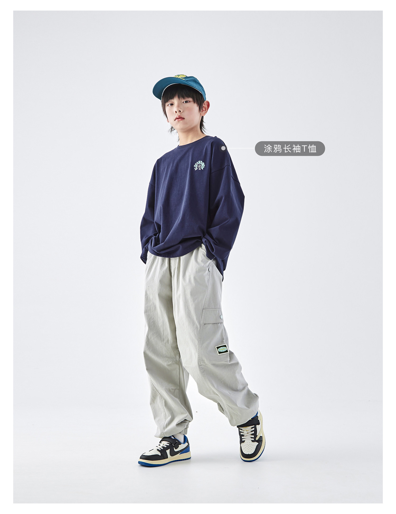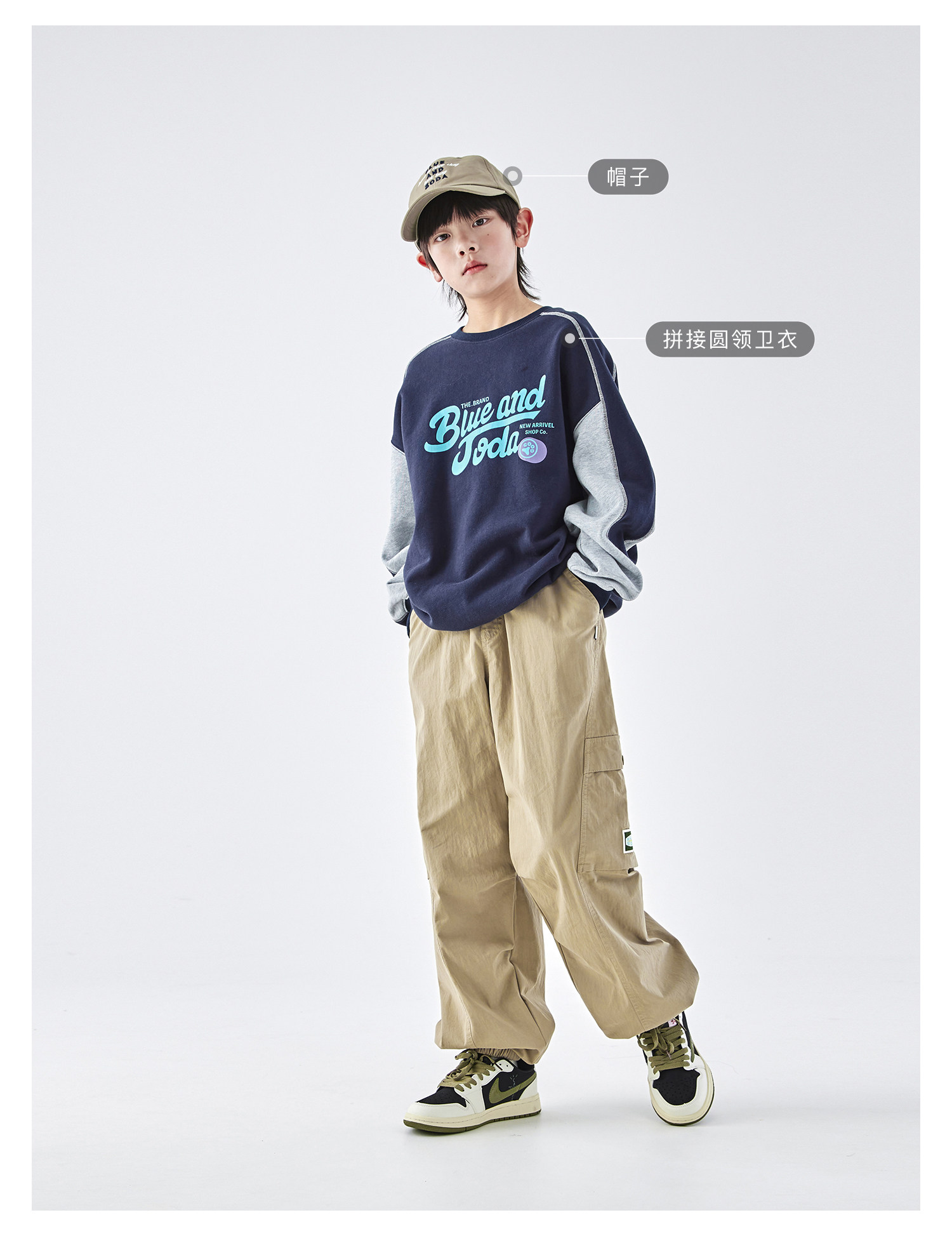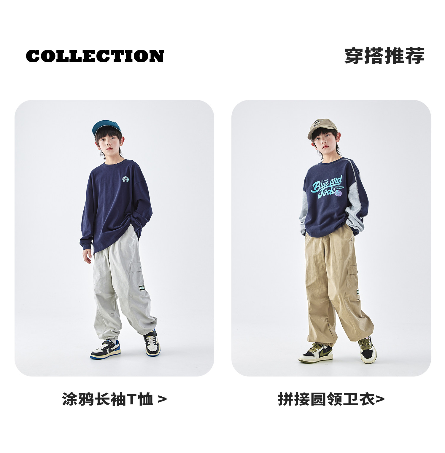 预售4.24发 蓝汽水2026春季男童水洗斜纹束脚裤工装设计青少年口袋耐磨工装裤