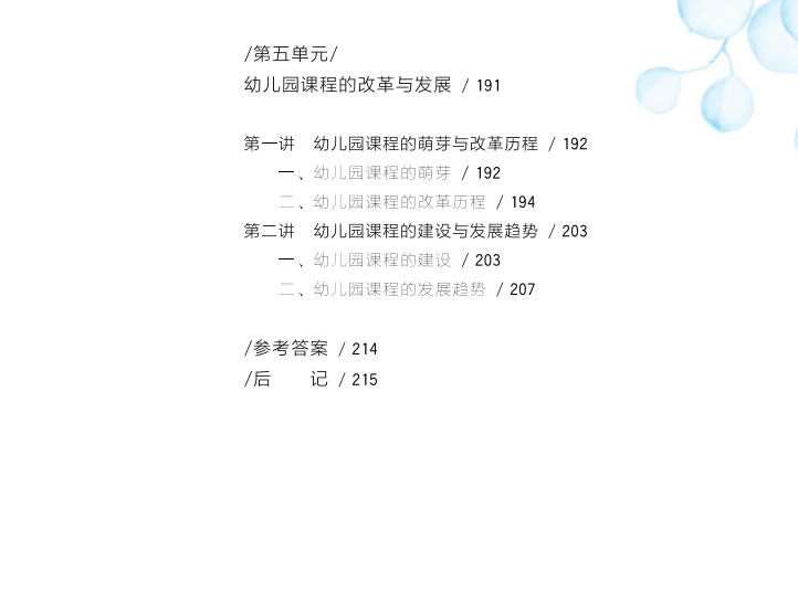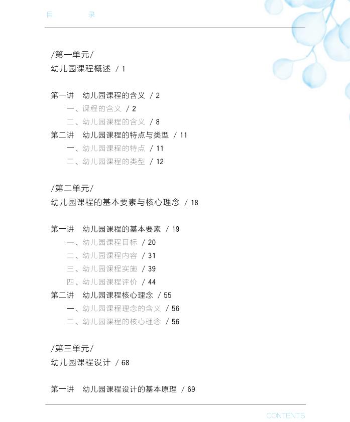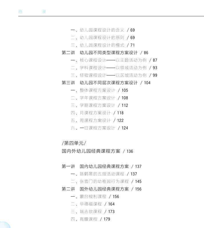 本书紧密结合《3~6岁儿童学习与发展指南》等文件精神,充分吸纳了新时代学前教育和其他相关学科发展的研究成果。各单元以思维导图为引领,以实际问题情境进行头脑风暴导入学习,接着进行理论学习及其拓展,再进行实践运用及其拓展,形成理论与实践闭环。其中还穿插各种案例和练习进行强化。较为全面地把握了学前教育专业人才培养及学前教师教育发展需求,整体上体现了思想站位高、问题思考深、内容涵盖广、方法手段新、适应方面宽的特点。