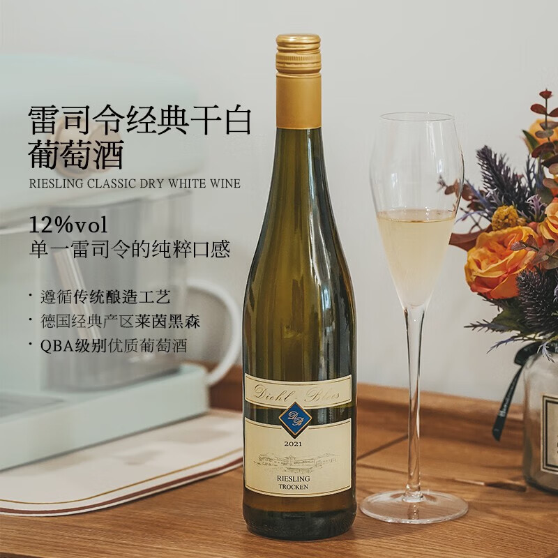 【QBA级莱茵黑森】德国帝博利雷司令经典干白葡萄酒 单一雷司令的纯粹口感 12%vol