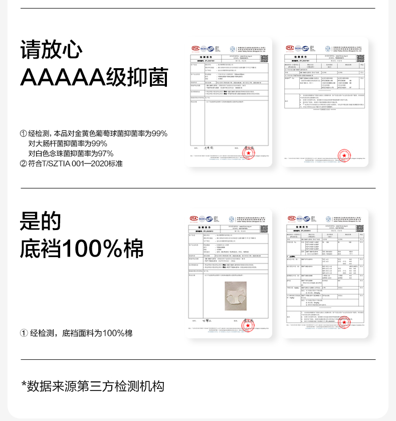 【新品上新】有棵树100支新疆长绒棉10A级抗菌纯棉加长档女士三角裤3条装-U3353
