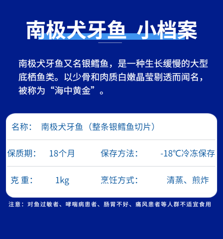 【OCEAN SIR】独元优选 南极犬牙鱼(整条银 鳕鱼切片)礼盒装1kg