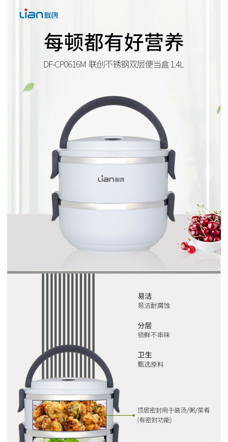 联创(LIAN)保温饭盒 不锈钢双层便当盒 DF-CP0616M 绿色