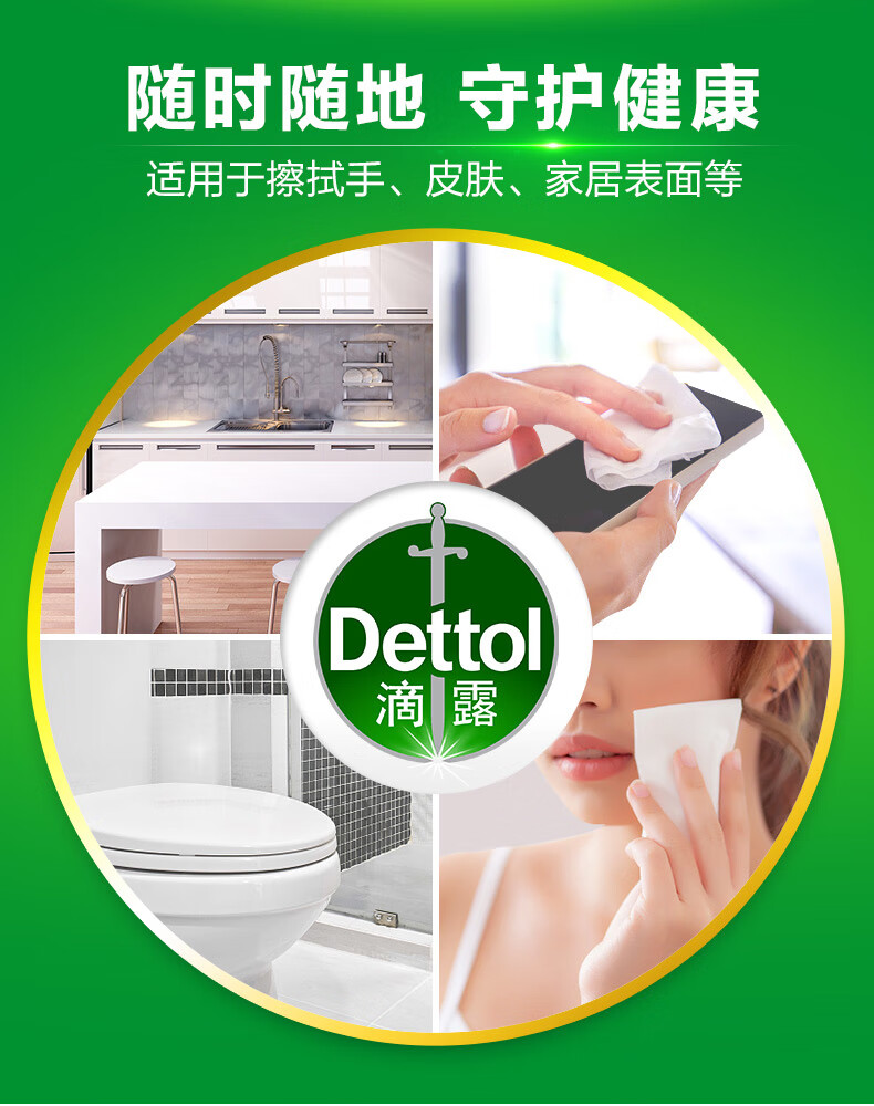 滴露(Dettol)卫生湿巾50片 消毒湿巾*2