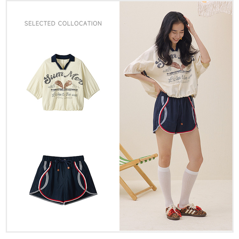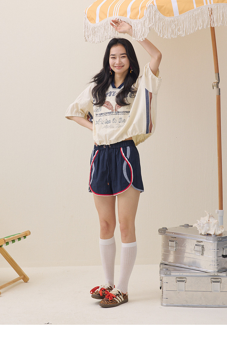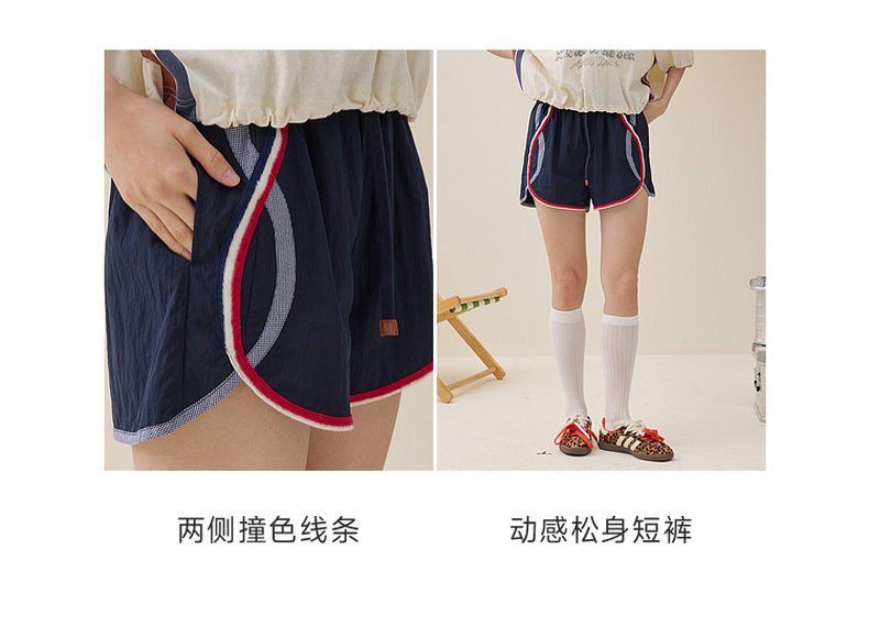 谜底撞色休闲短裤2026夏季新品动感活力抽绳腰头裤子女262MK0499