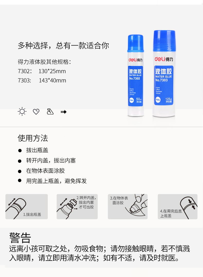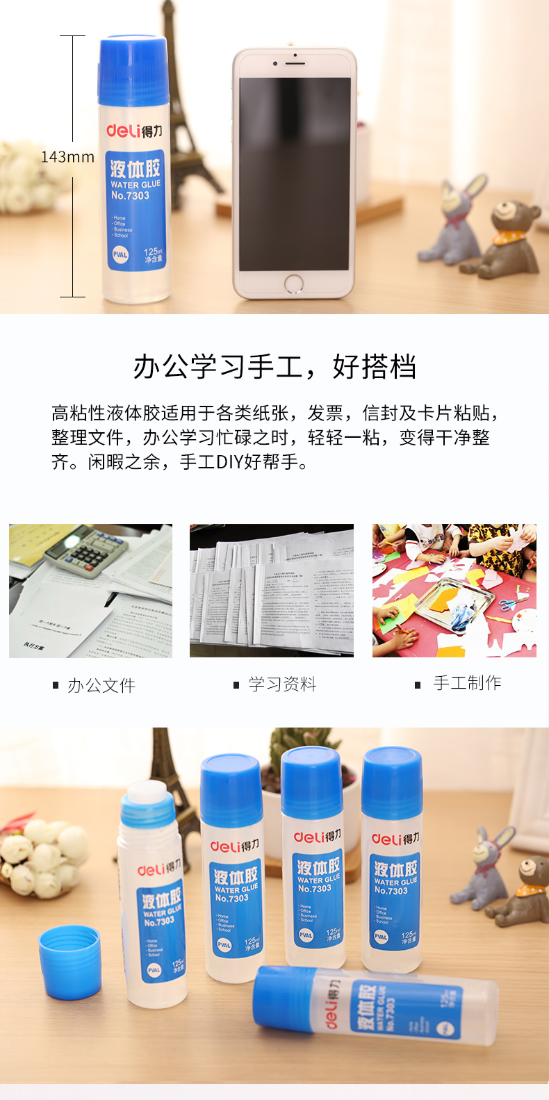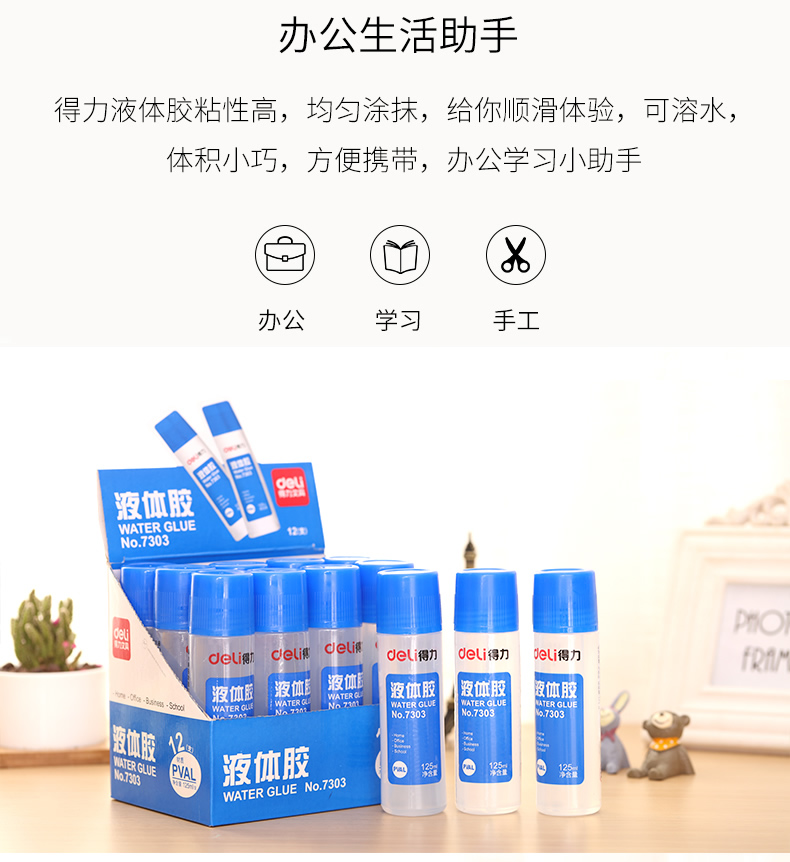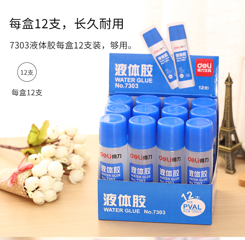 【仅供集采】得力液体胶水7303通用学生美工胶水办公胶粘用品125ml规格 12支装