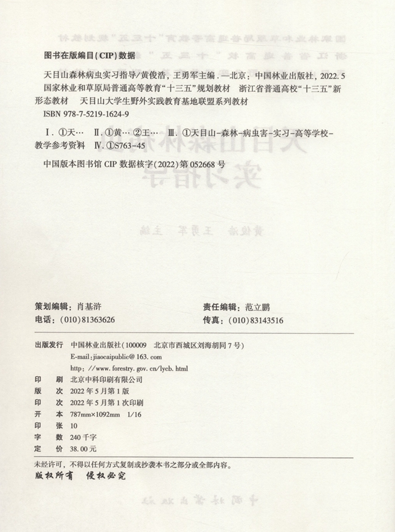 天目山森林病虫实习指导(国家林业和草原局普通高等教育十三五规划教材) 1624 黄俊浩//王勇军 中国林业出版社