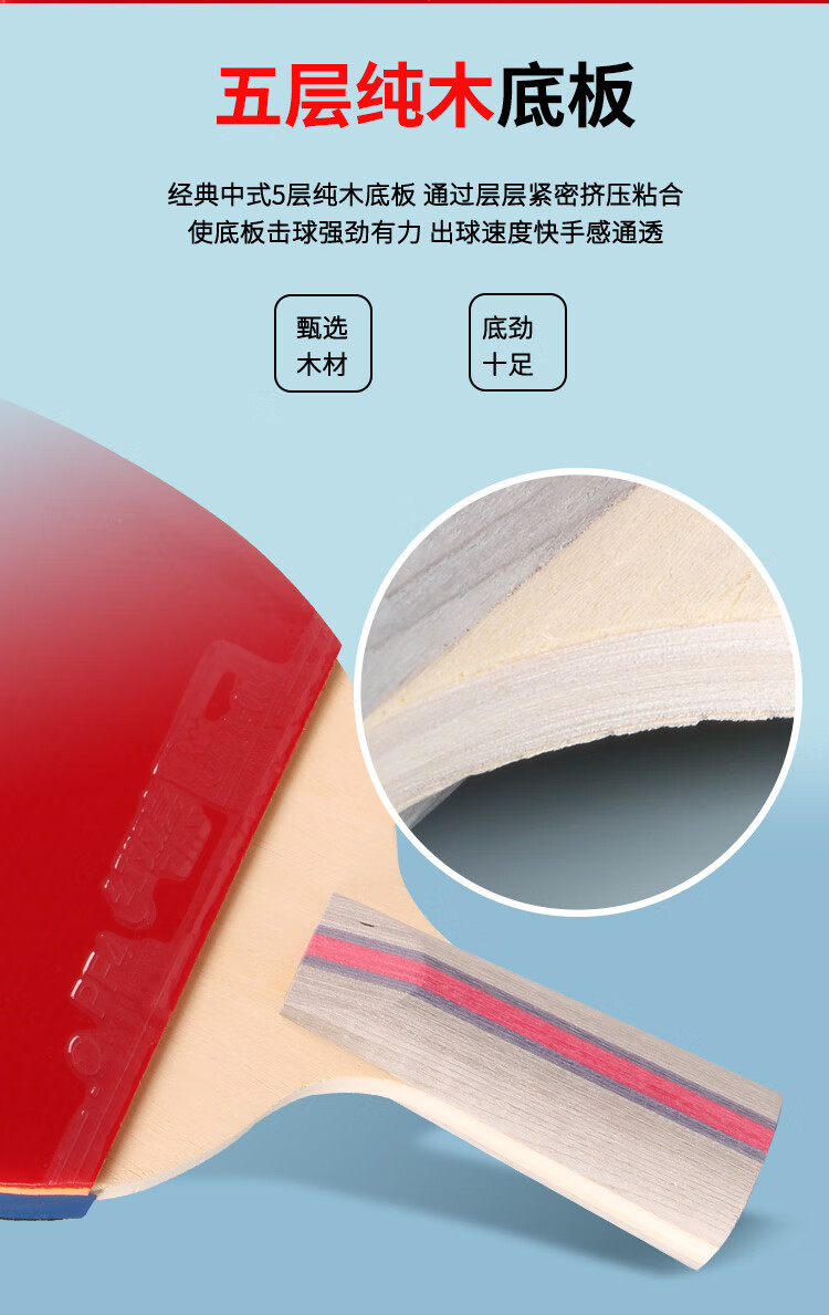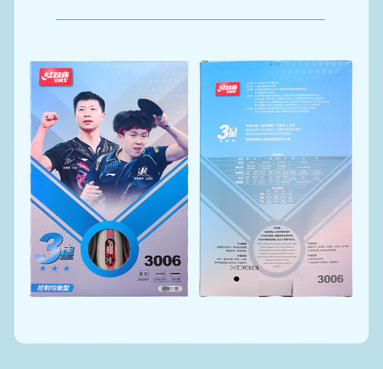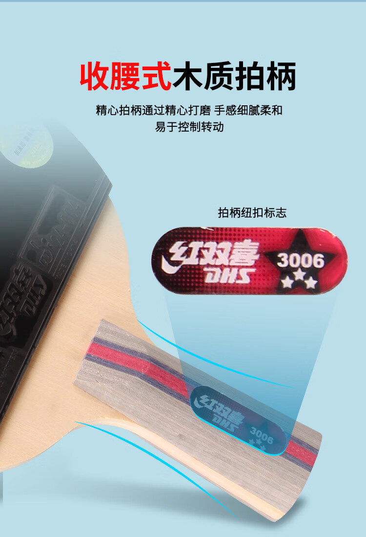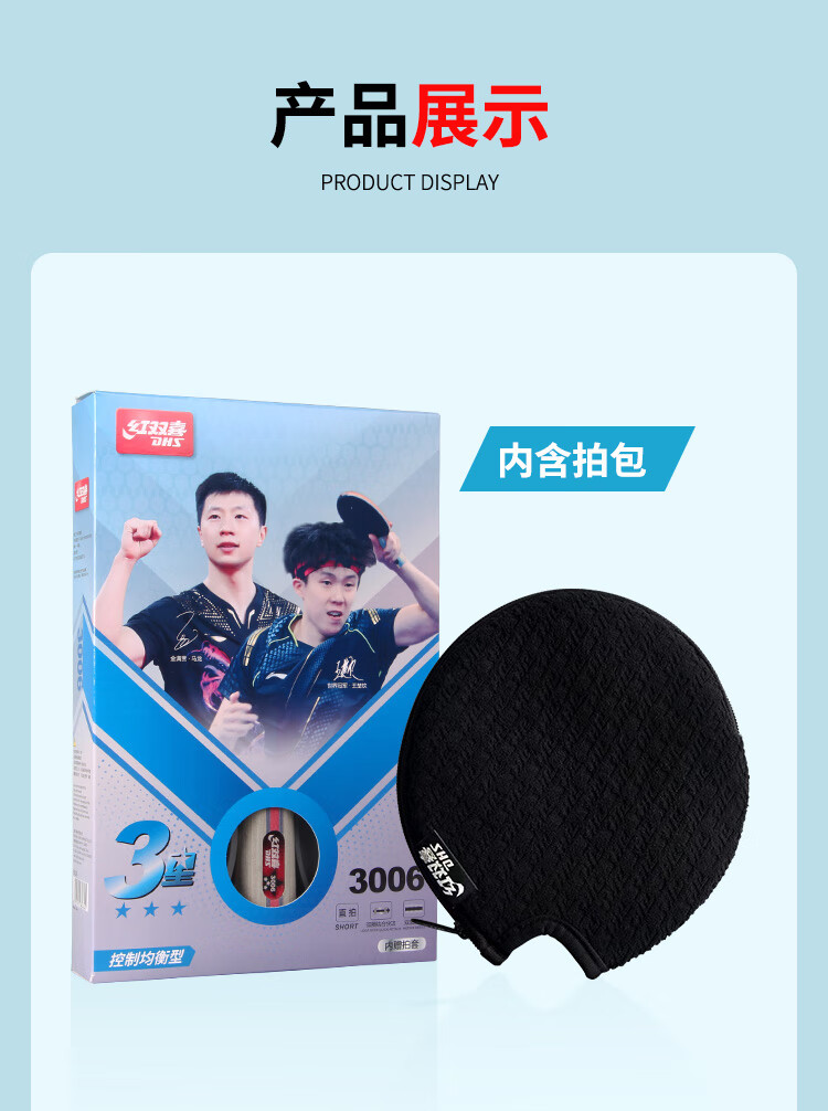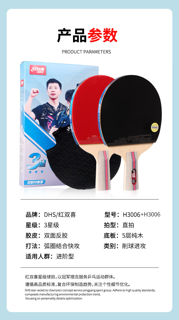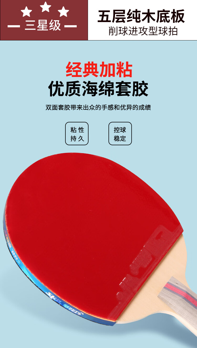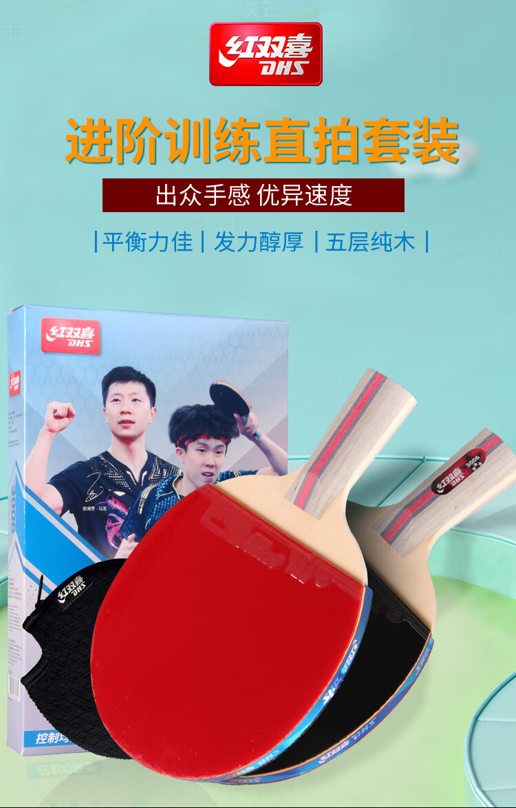 积分免费兑:红双喜三星直拍对拍乒乓球拍套装五层底板H3006双拍附球包乒乓球