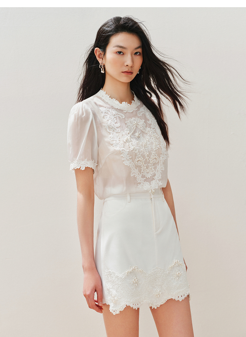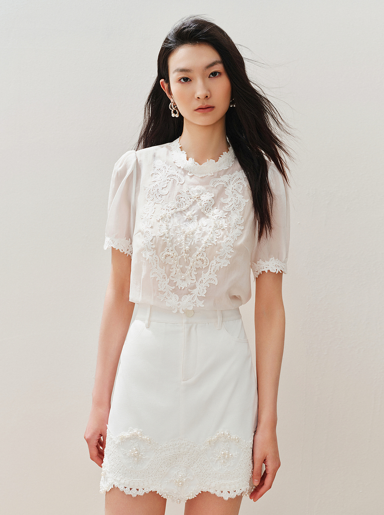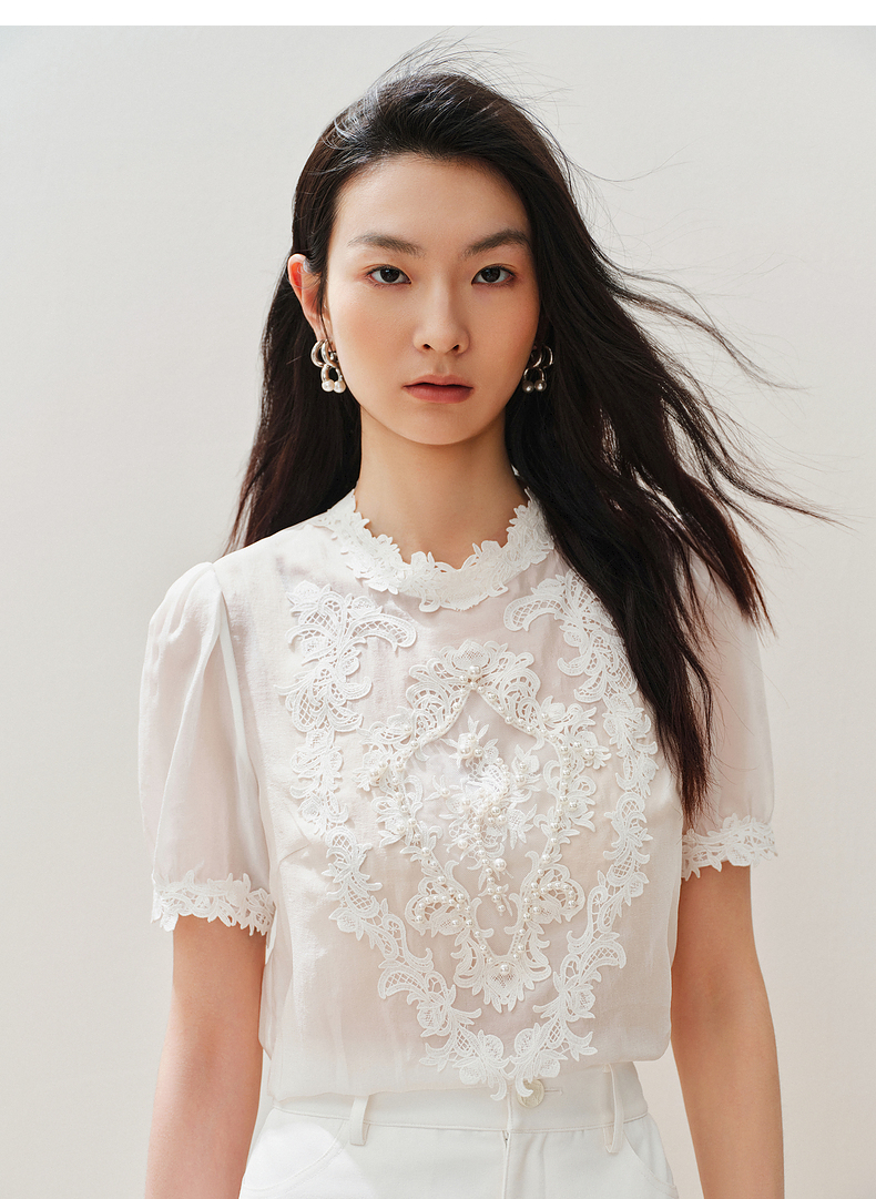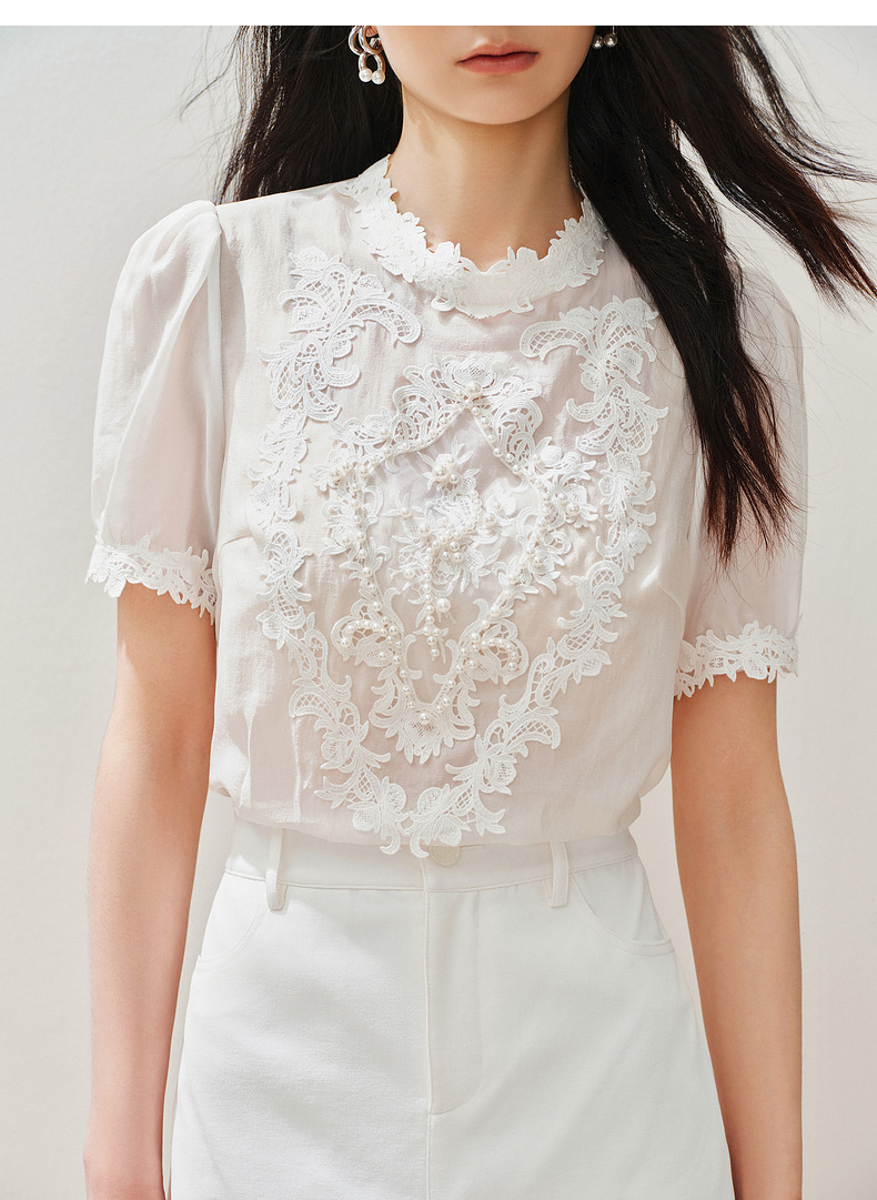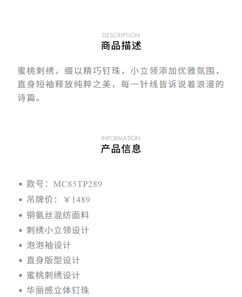玛克门店发货:MAXRIENY华丽浪漫感刺绣钉珠上衣2024夏款(货号:MC85TP289)