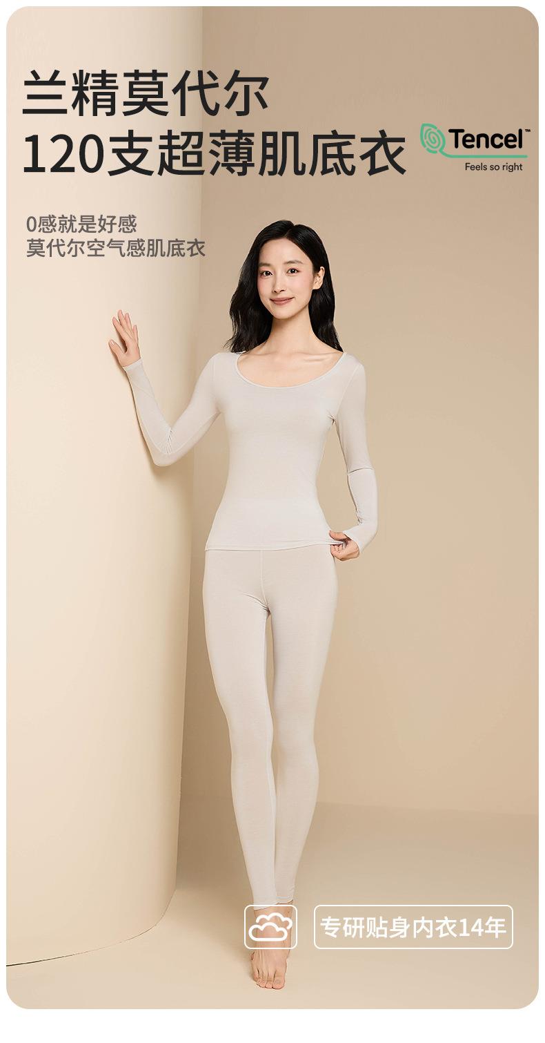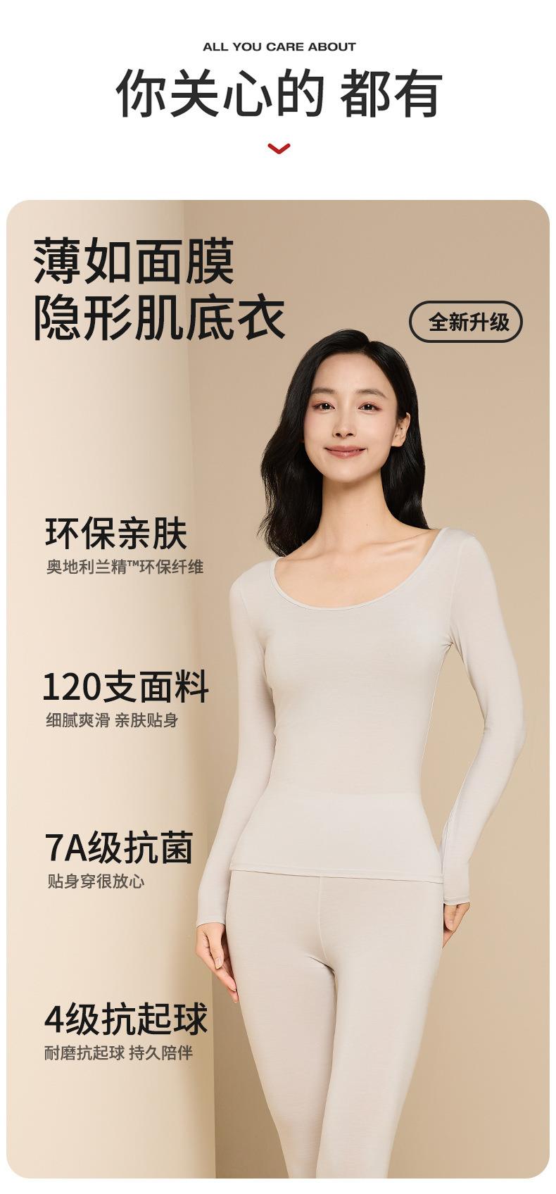 【10A抗菌莫代尔保暖内衣套装】2025冬季女美肤衣高弹保暖秋衣秋裤套装肌底衣