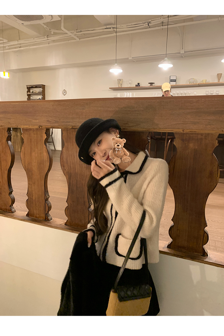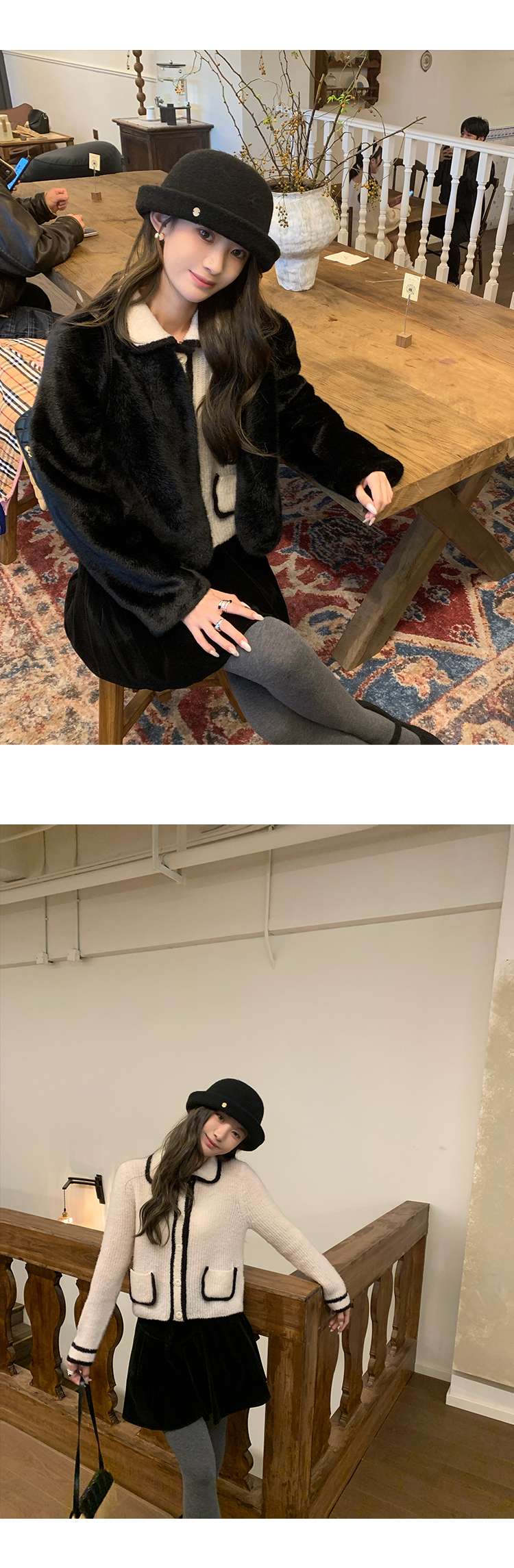 Read Nameless /韩国款小香羊毛针织外套+黑色仿水貂皮草