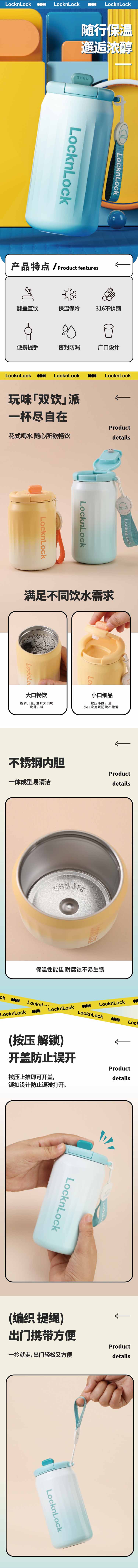 乐扣乐扣 炫彩菱纹咖啡杯渐蓝450ml