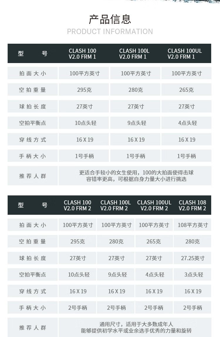 威尔胜(Wilson)CLASH V2系列全碳素一体全面舒适电镀涂装专业网球拍WR074411U无浮雕