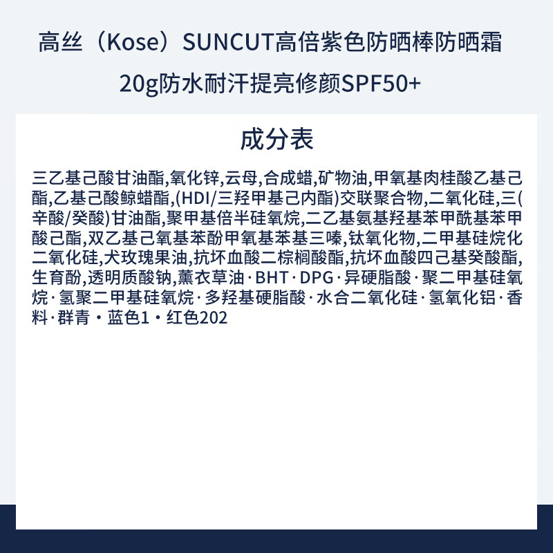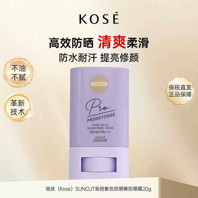 【保税仓】KOSE/高丝suncut新版防晒棒便携固体防水紫色提亮款20g