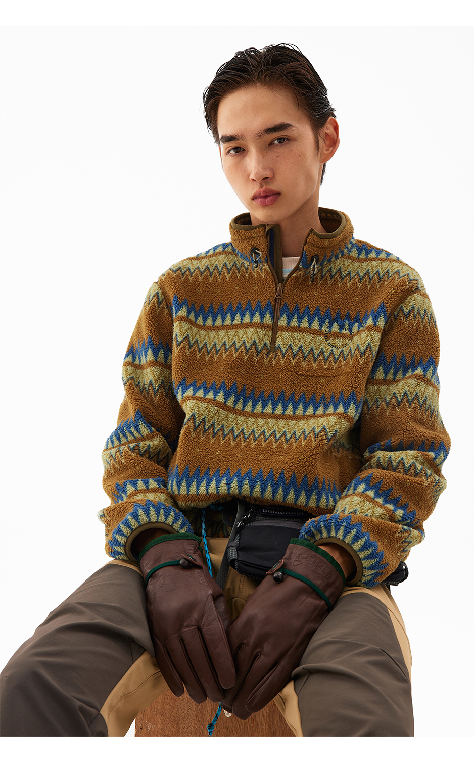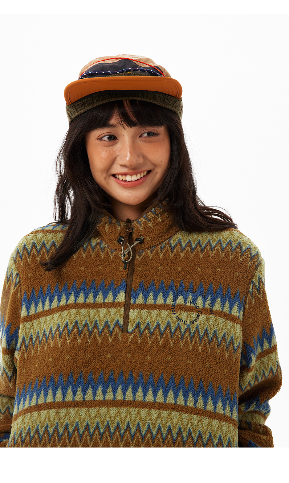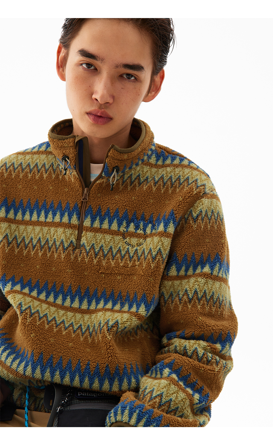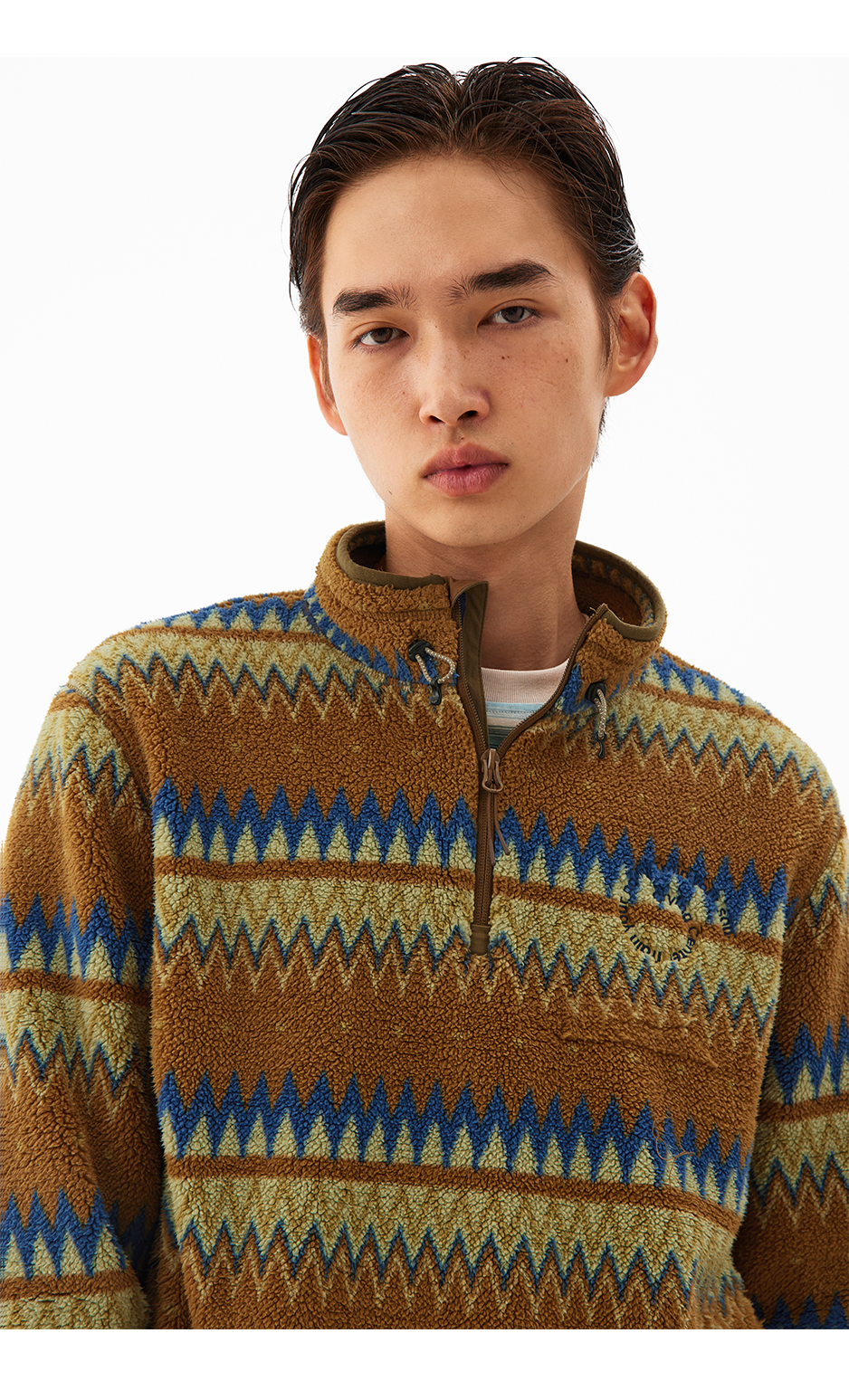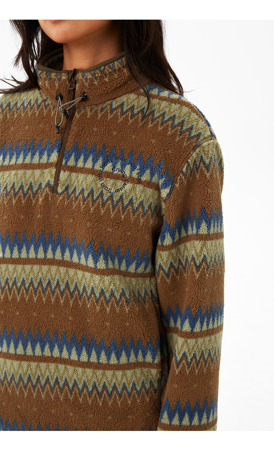 CryingCenter 循环图案摇粒绒立领抽绳套头卫衣 哭喊中心