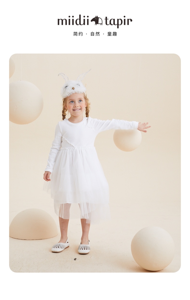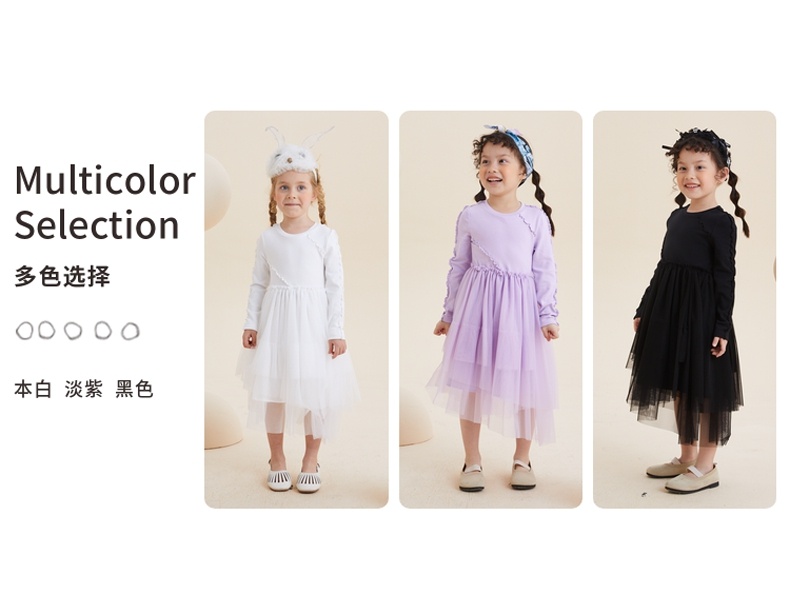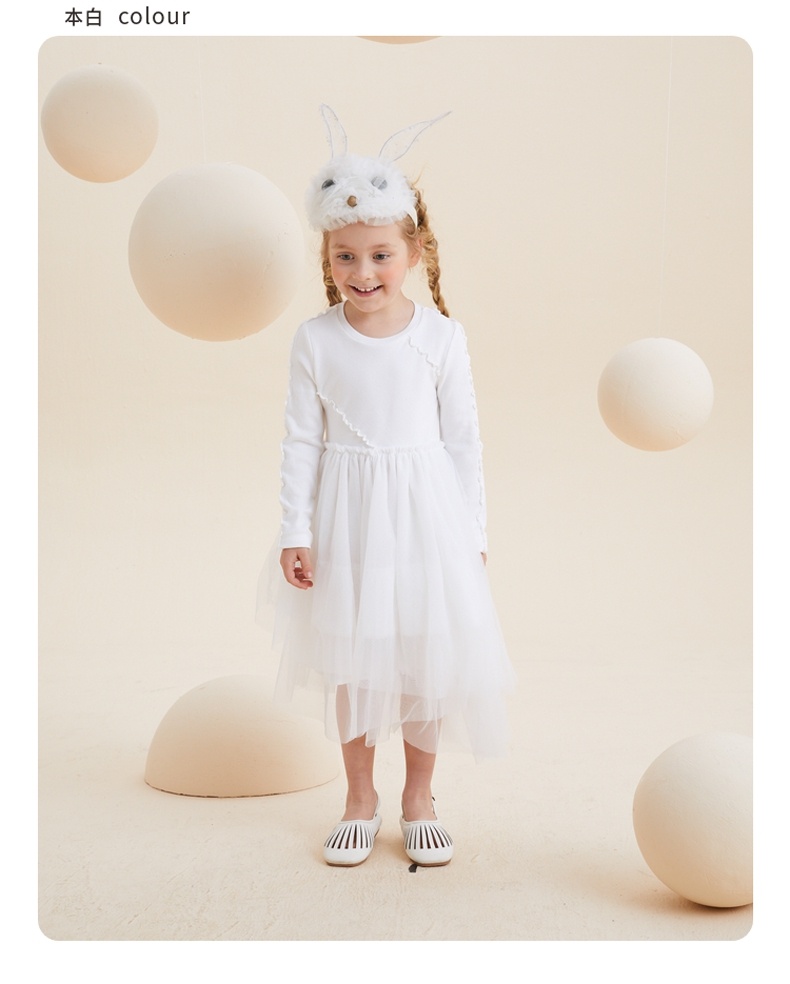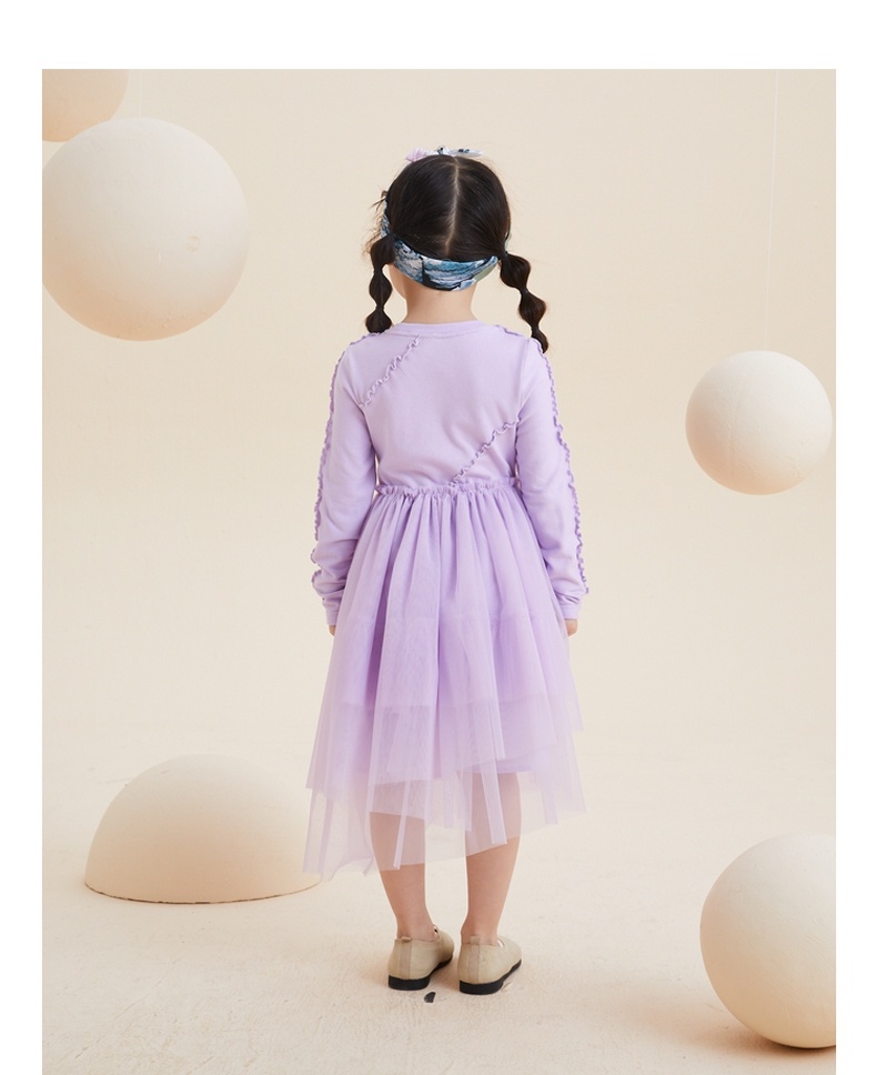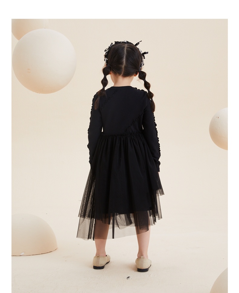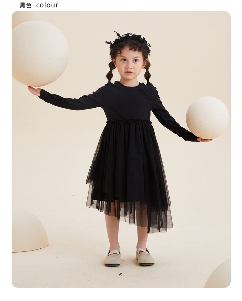 谜底童装21秋新款X型中长款连衣裙针织拼接网纱连衣裙213KL2270