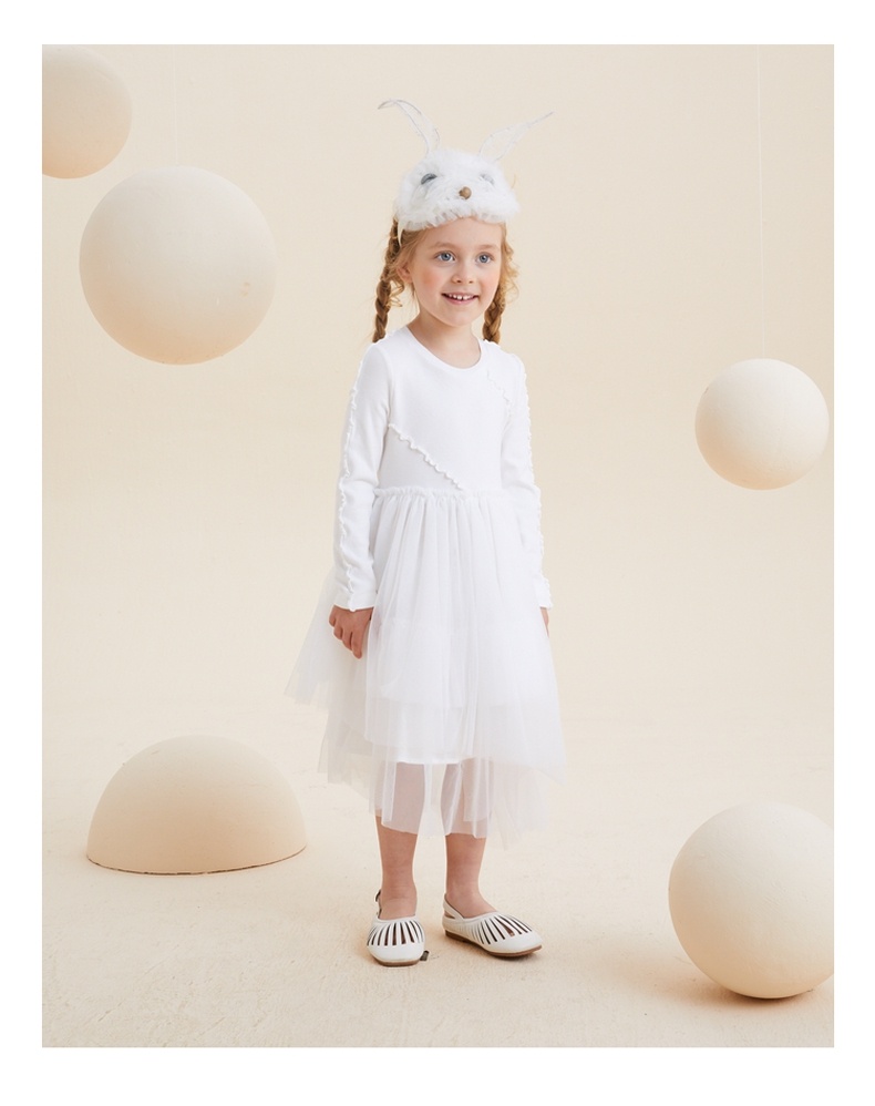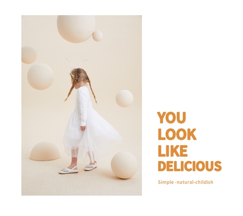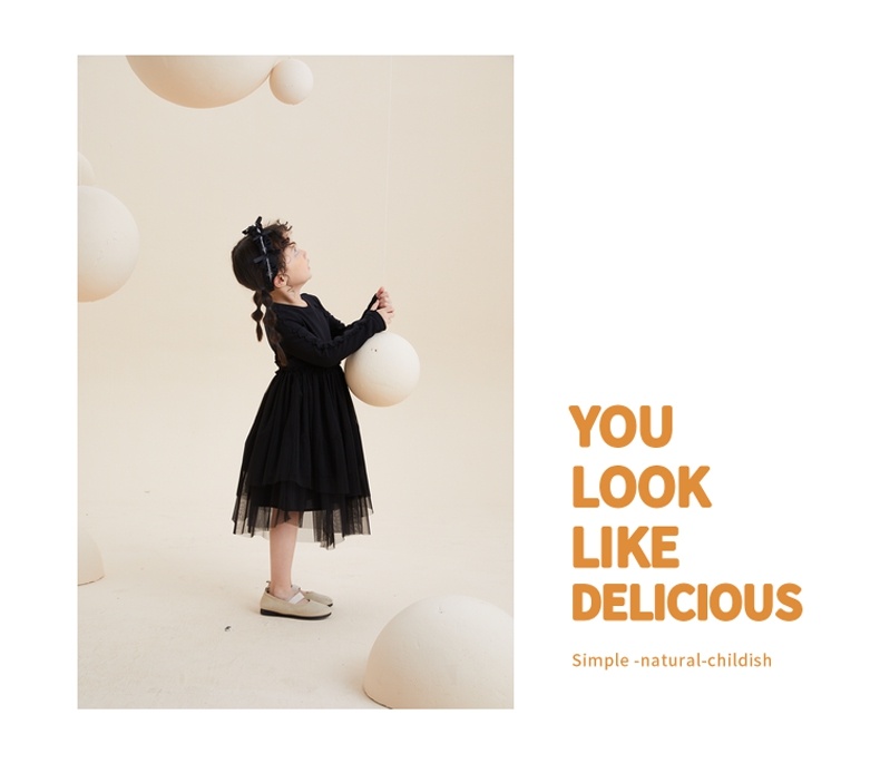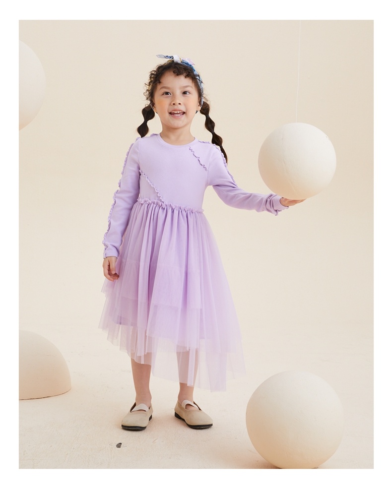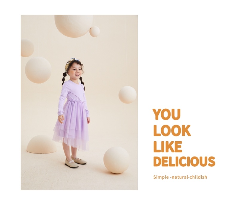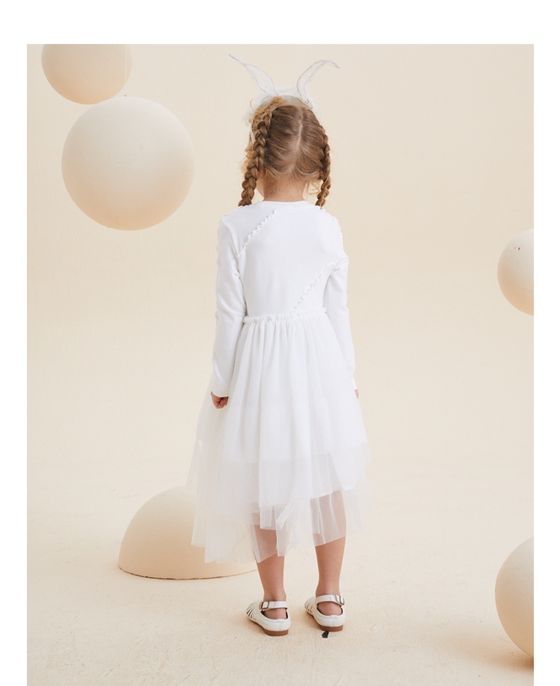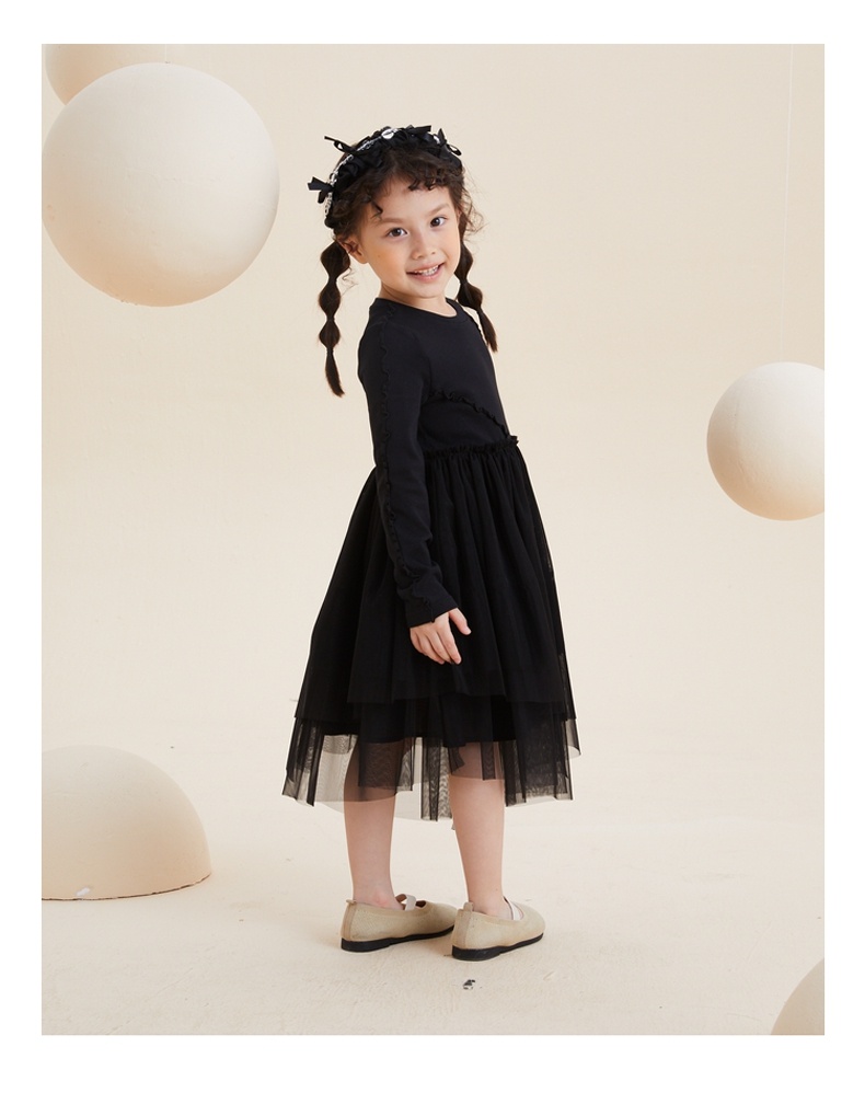 谜底童装21秋新款X型中长款连衣裙针织拼接网纱连衣裙213KL2270