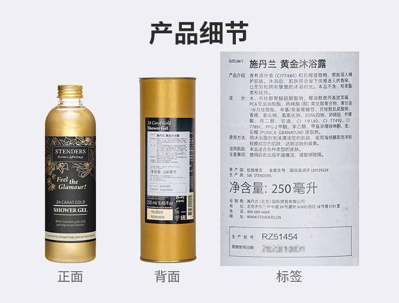 施丹兰(STENDERS)黄金沐浴露250ml滋养柔和清洁肌肤沐浴液持久留香 心选到家