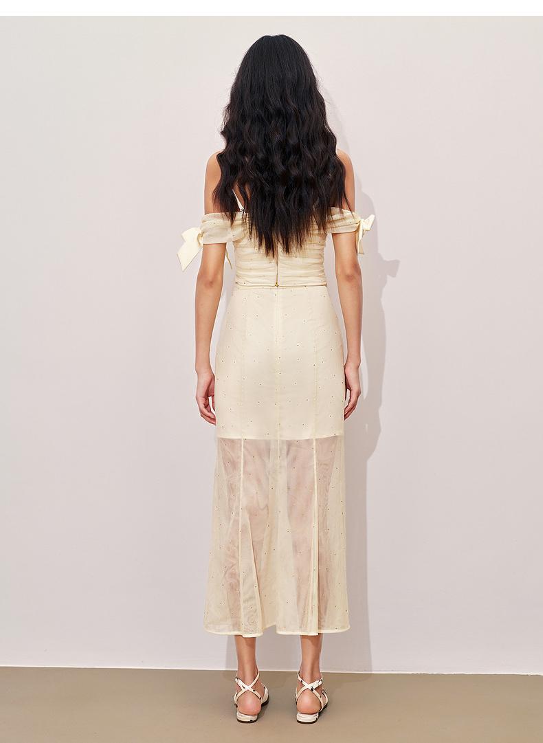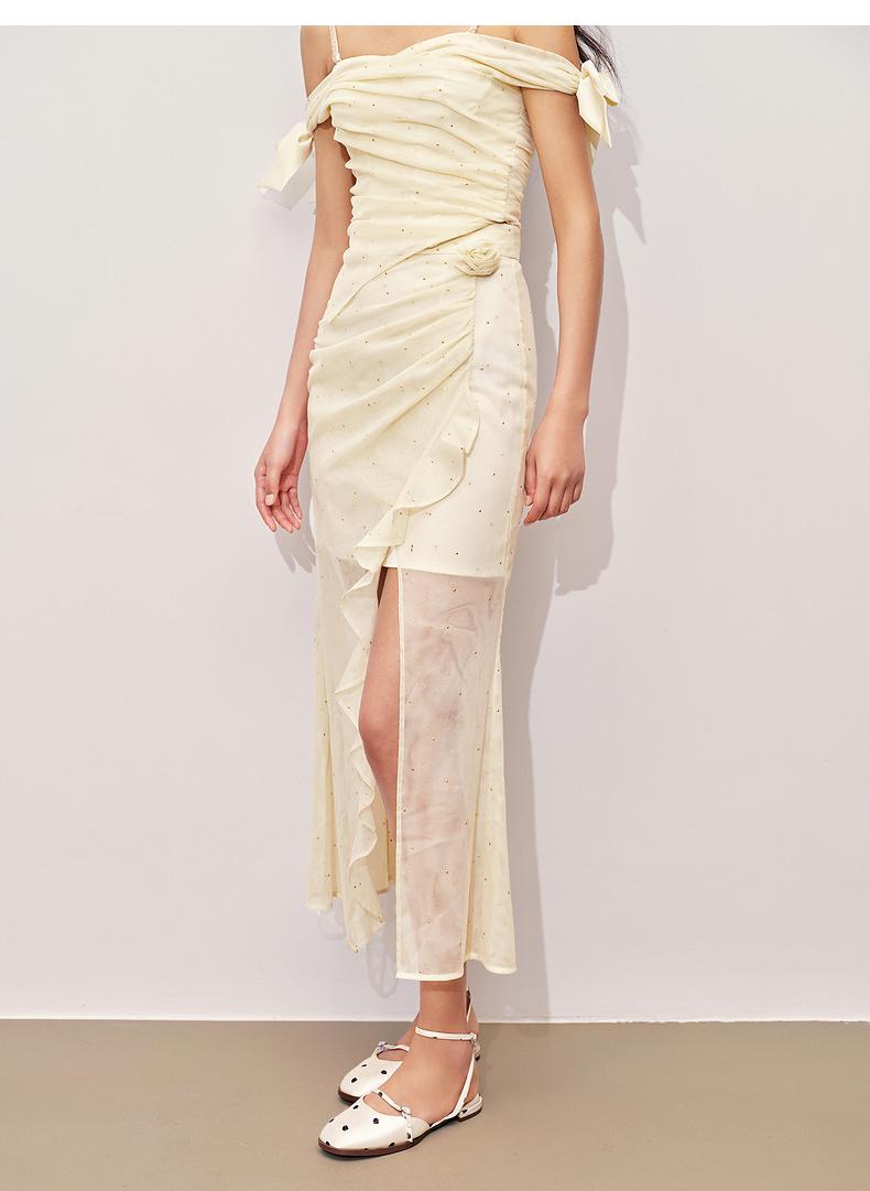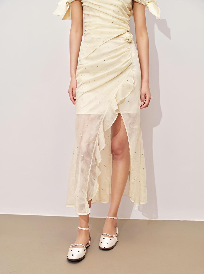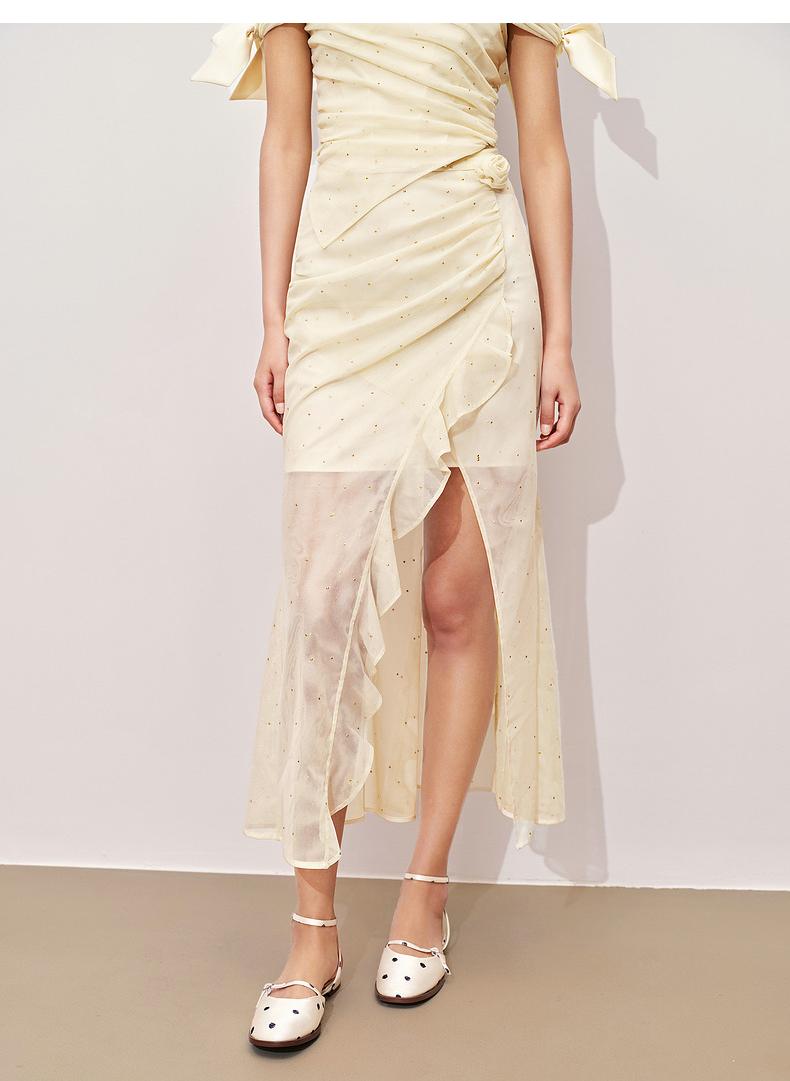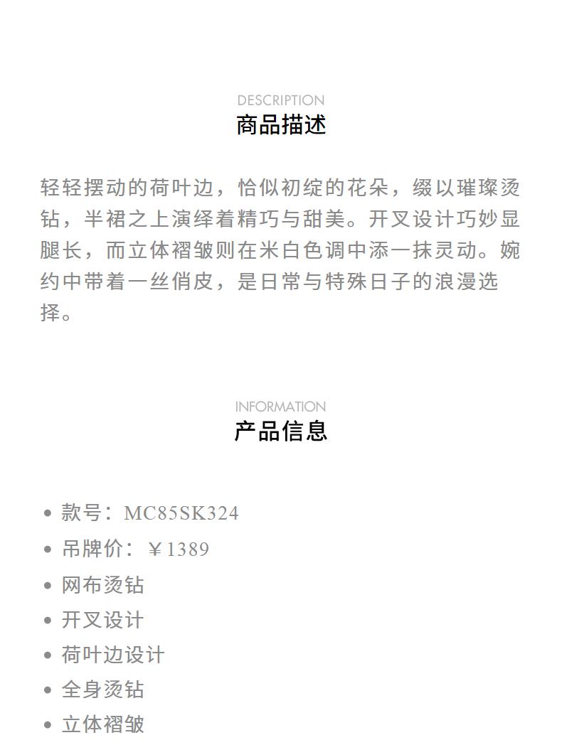 玛克门店发货:精致甜美感开叉烫钻半裙高级气质感修身显瘦(货号:MC85SK324)